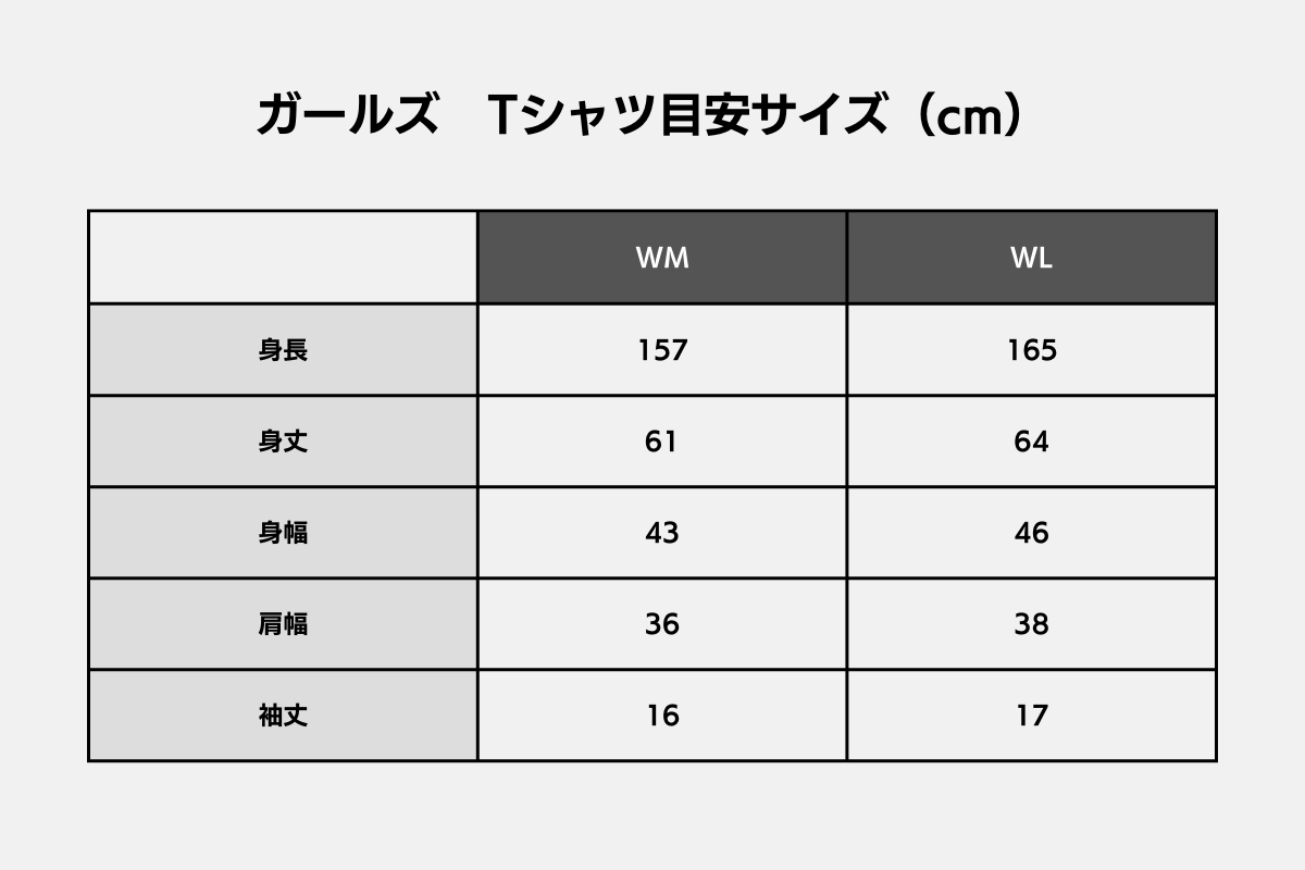 ガールズ用Tシャツのサイズの目安は以下になります。