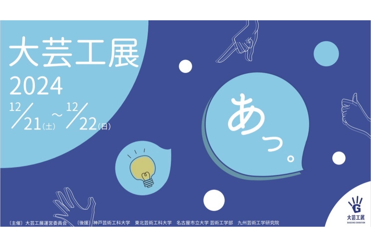 「大芸工展」とは、九州大学 芸術工学部、神戸芸術工科大学 芸術工学部、東北芸術工科大学 デザイン工学部、名古屋市立大学 芸術工学部、4つの芸術工学を学ぶ大学生による合同展示会です!