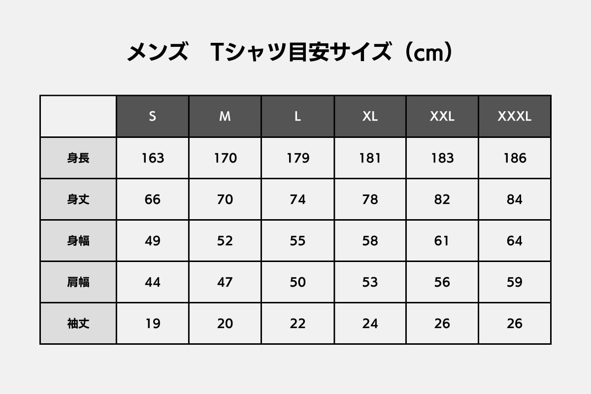 メンズ向けのTシャツは、身長163cm~186cmの方が快適に着られるサイズを用意しています。