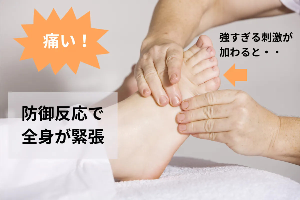 人は痛いと思うと防御反応で身体が緊張しまい、全身に力が入り、硬くなってしまいます。