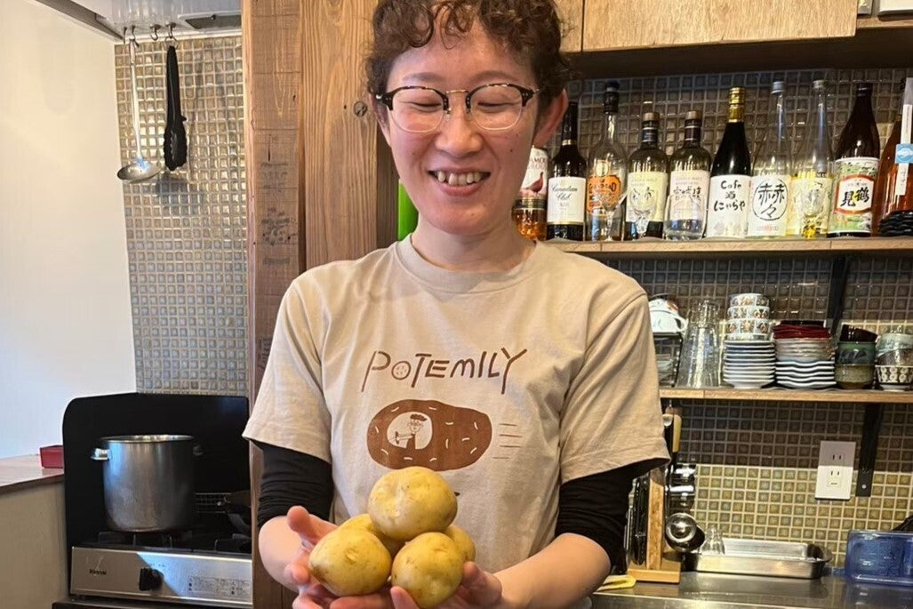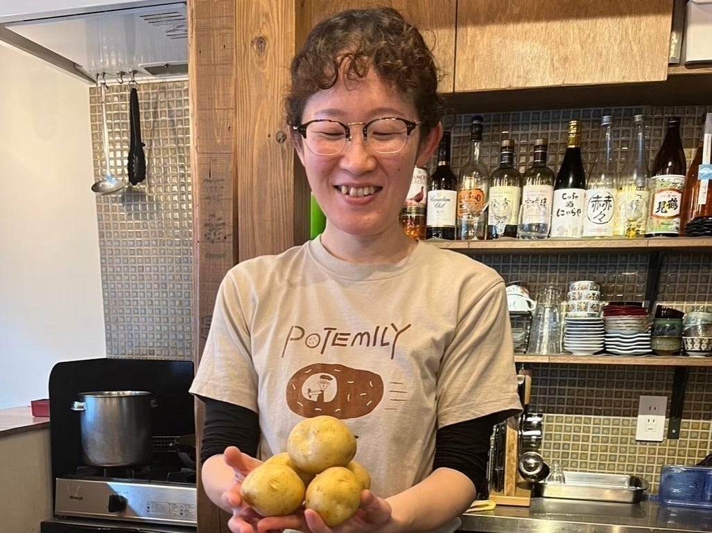 2024/11/21 10:00長野県上田市のアトリエ「リベルテ」にて、日々イラストを描いているMarikoさん。GoogleMap上で脳内旅行した先での風景スケッチから生まれた「いもフライTシャツ」は、今回のプロジェクトリターン商品としてもご協力いただいています!思わず目をひく脱力系のイラストで、どんな町でも人気者になれる。ポテミリーも出店先では愛用しています。ぜひ、これを機に一家に一枚。▶メッセージ◀365種類ものポテトサラダを発表なさったとか。一年分完成おめでとうございます。同じ種類を何回作ってもいいから具を変えたり、調味料を変えたりしたら一生いいですね。もう少し増やす気もありますでしょう。私は、小さい頃母と畑にポテトの切り口を灰でつけて蒔いた記憶があります。マッシュしたポテトに好きな具は、みかん缶・胡瓜・ザーサイ・らっきょうとか色々あり、ポテトサラダ、私も大好きです。唐川さんも365種あっても、特に好きなものもあるでしょう。 もっと見る