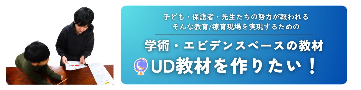 UD教材という子ども支援の専門教材を実現することを。