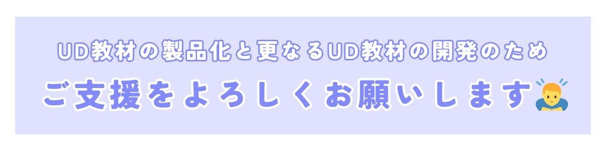 皆様にはぜひUD教材の製品化と更なるUD教材開発のため、お力をお貸しいただき、ご支援をお願い申し上げます。