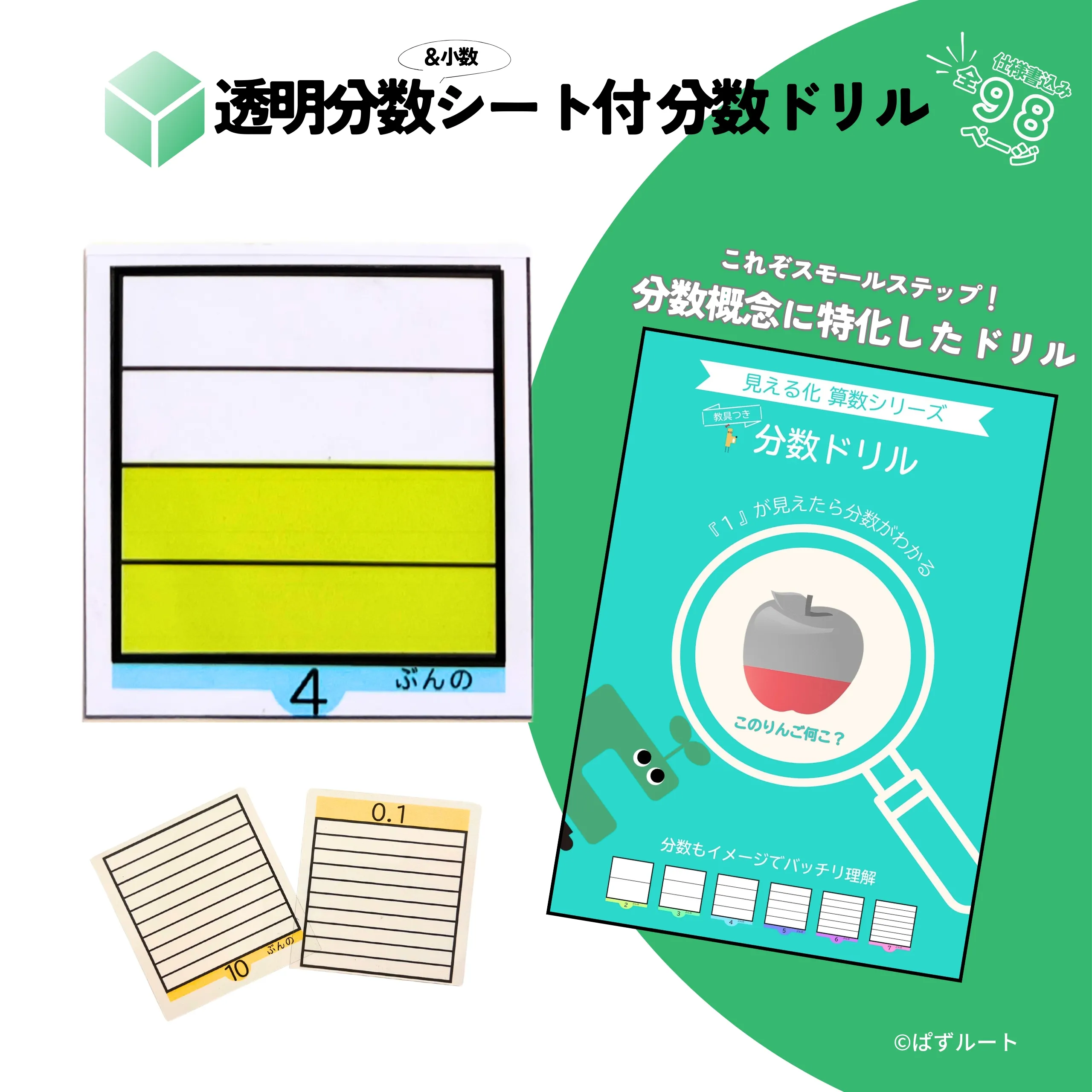 2025/05/25 15:00皆様ご無沙汰しております!UD教育社です!この度、透明な分数・小数シートの販売を実施する運びとなりましたので、報告させていただきます!今回は、全98ページ(うち問題90ページ)の透明な分数・小数シートを活用しながら取り組める分数ドリルと分数・小数シートのセット販売となります!クラウドファンディングの支援者の皆様にはデータでのワークシートをお渡しさせていただきましたが、紙媒体があれば…という声もいただき、自費出版にて制作させていただきました!ご興味ある方がおられましたら、下記サイトよりご注文いただけますと幸いです。https://puzzorutes.official.ec/予約期間:5月25日~6月2日クラウドファンディングで興味をもっていただいた皆様のうち、ご支援を逃してしまった皆様ににおかれましては、ぜひこの機会にご注文ください!今後ともよろしくお願いいたします。【製品詳細】■内容物①分数ドリル一冊(全98ページ、うち問題90ページ) ▶分数の概念に特化したドリル ▶解答は「プリントの進め方」ページ右上QRコードからチェック ▶分数概念の問題を中心に、一部小数の問題も収録②透明な分数・小数シート(全12枚) ▶10枚のとうめい分数シート ※2 / 3 / 4 / 5 / 6 / 7 / 8 / 9 / 10 / 100ぶんのシート ▶2枚のとうめい小数シート ※0.1 / 0.01シート ▶ドリル付属の台紙やドリル本体と一緒に活用■使い方動画 ▶https://youtu.be/e3zAZNm_1dA【使い方動画一覧】 もっと見る