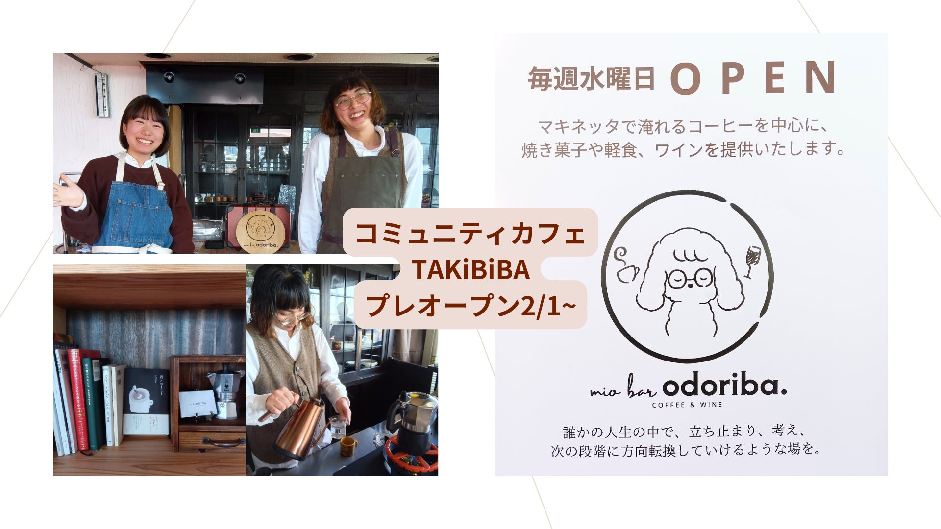 2月1日より、よしくん&あすみんが手がけるコーヒー&ワインのお店 「mio bar odoriba」 をプレオープンいたしました。