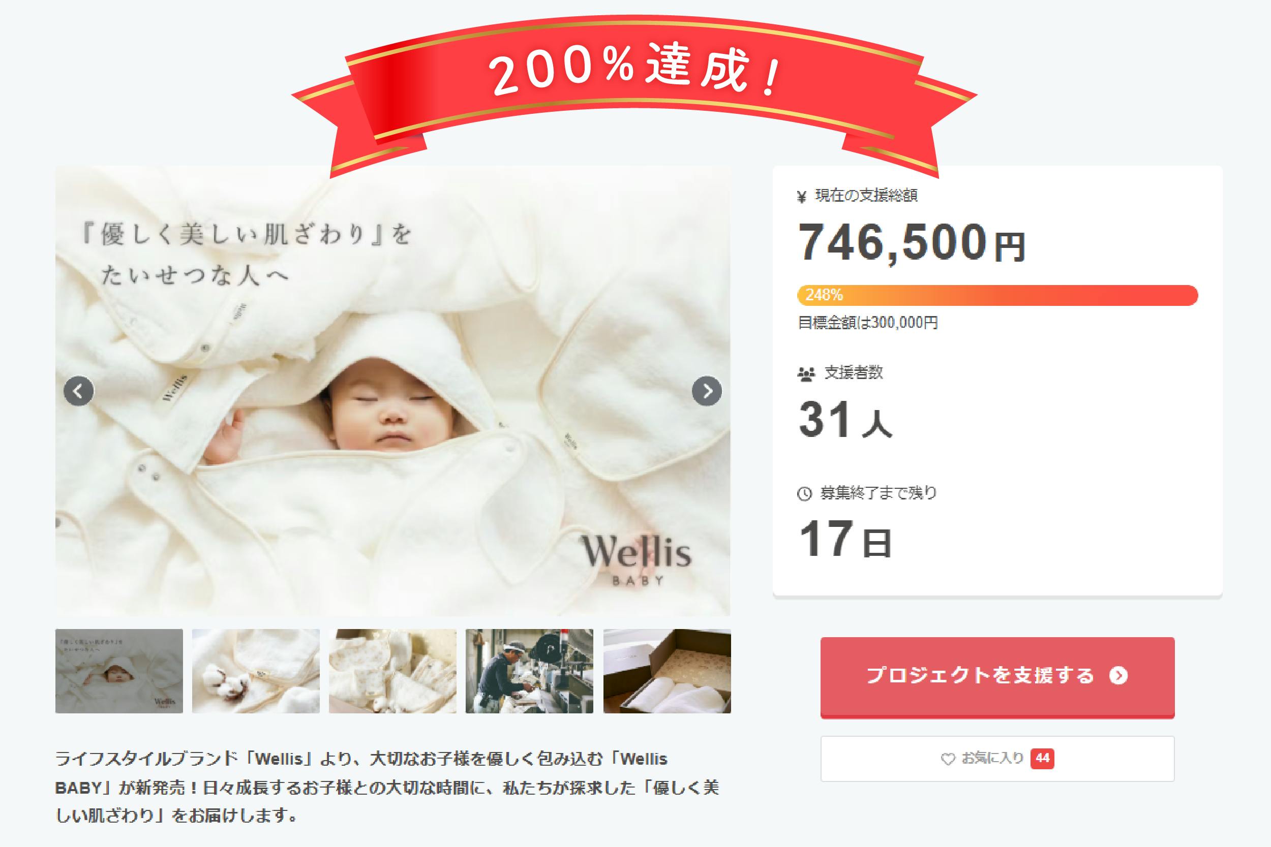 2024/11/13 16:12現在、当初の目標金額を大きく上回り、目標金額の200%を達成いたしました!皆様からの温かいご支援とご声援に、本当にありがとうございます。ネクストゴールとして目指している100万円までもあともう一歩となりました。この調子で最後まで突き進みたく、引き続き応援いただけると幸いです。今回のプロジェクトでは、Wellisの公式サイトでは実施したことのない、最大47%offで商品をお届けしています。ぜひこの機会をお見逃しなく! もっと見る