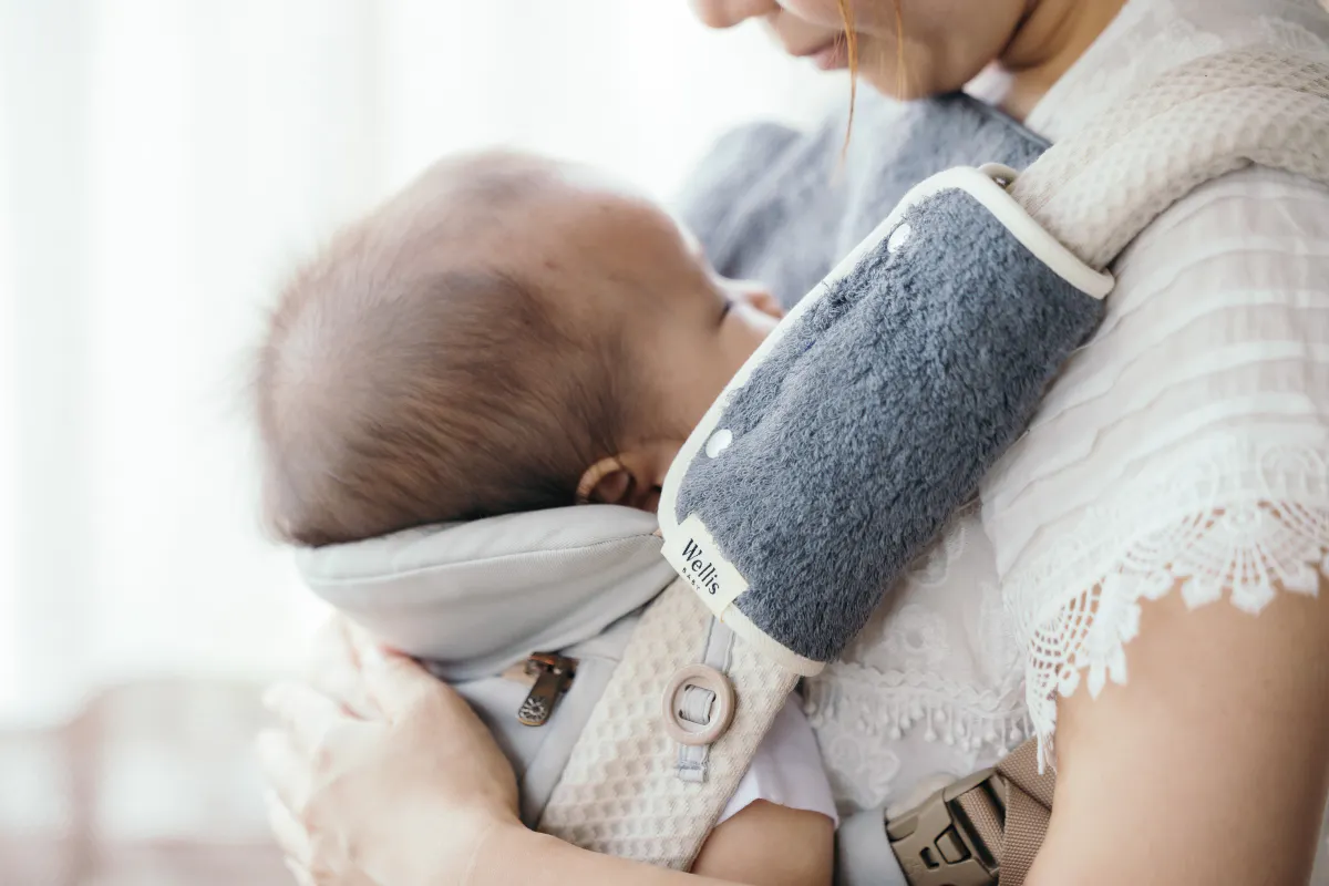 新生児・乳幼児は体温が高いため、1年を通して汗をかきやすくなっています。オーガニックスーピマコットンを使用した、やわらかく吸水性の高いWellisのSweat pad(スウェットパッド)は、お子様の繊細な肌にそっと寄り添います。 洋服を脱がせることなく背中から入れられるので、簡単に取り替えが可能です。また、眠っている時も、お子様を起こすことなくそっと取り付けられます。お出かけ時のベビーカーや、夜の寝かしつけに最適です。