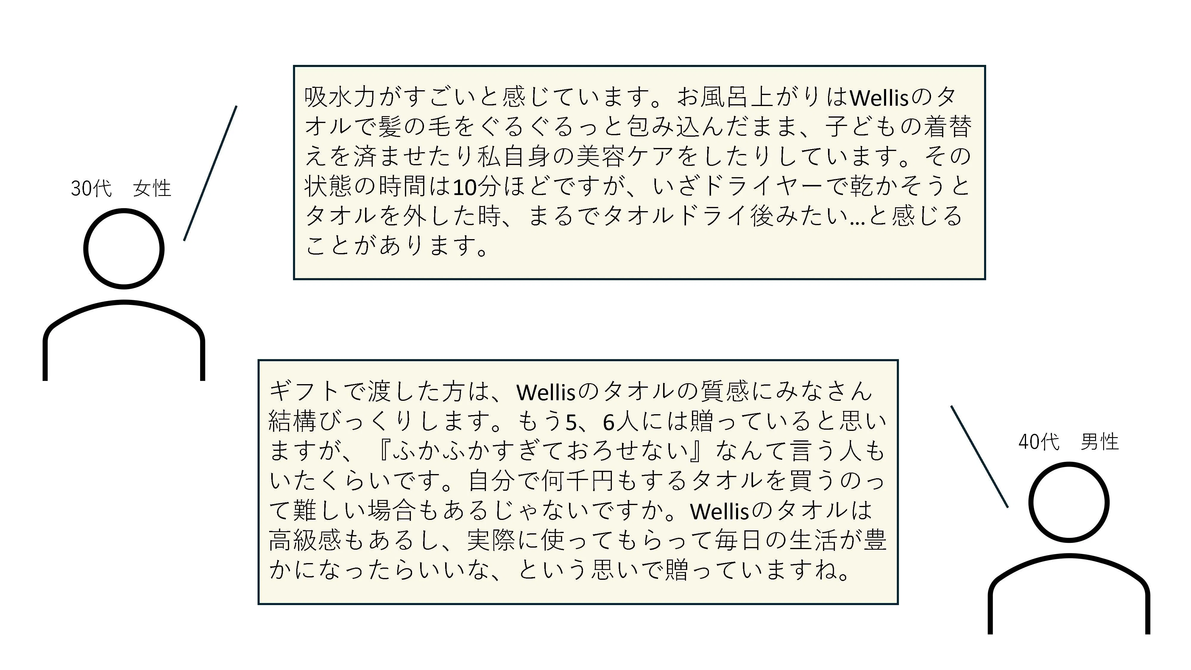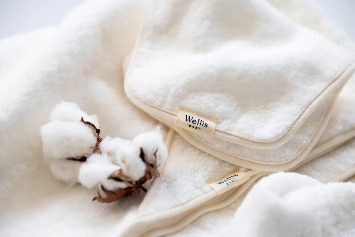 Wellis製品はロングパイルが特徴で、ボリューム感がありながらほつれにくい独自の織りを開発、染色や精錬にもこだわり、ひとつひとつ丁寧に、何度もテストを繰り返し完成した「Wellis BABY」のアイテムは、お子様の肌を優しく包みこみ、安心感と心地よさを提供します。