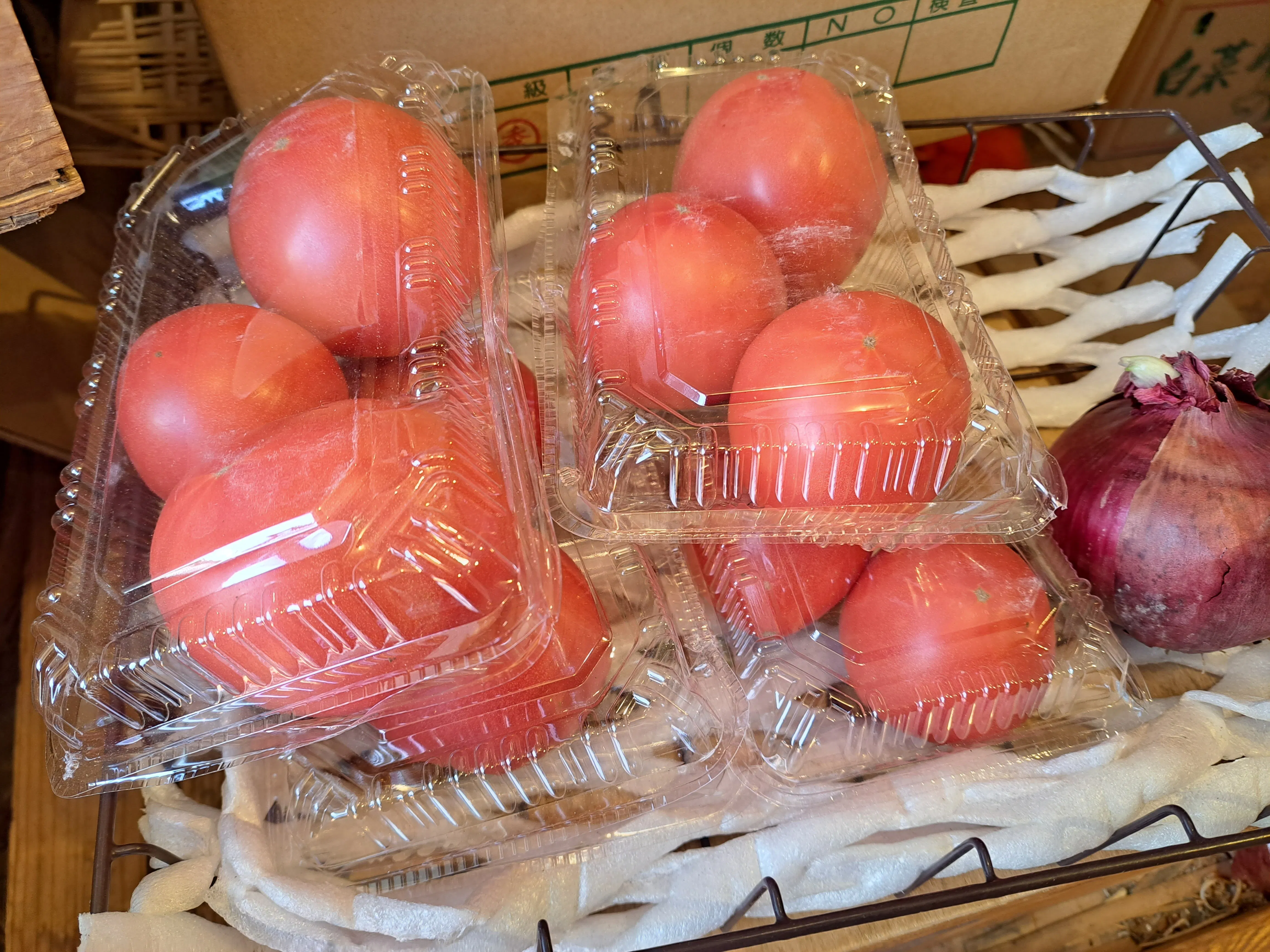 (業務提携を結ばせていただいている地域の八百屋さんのトマトです。)