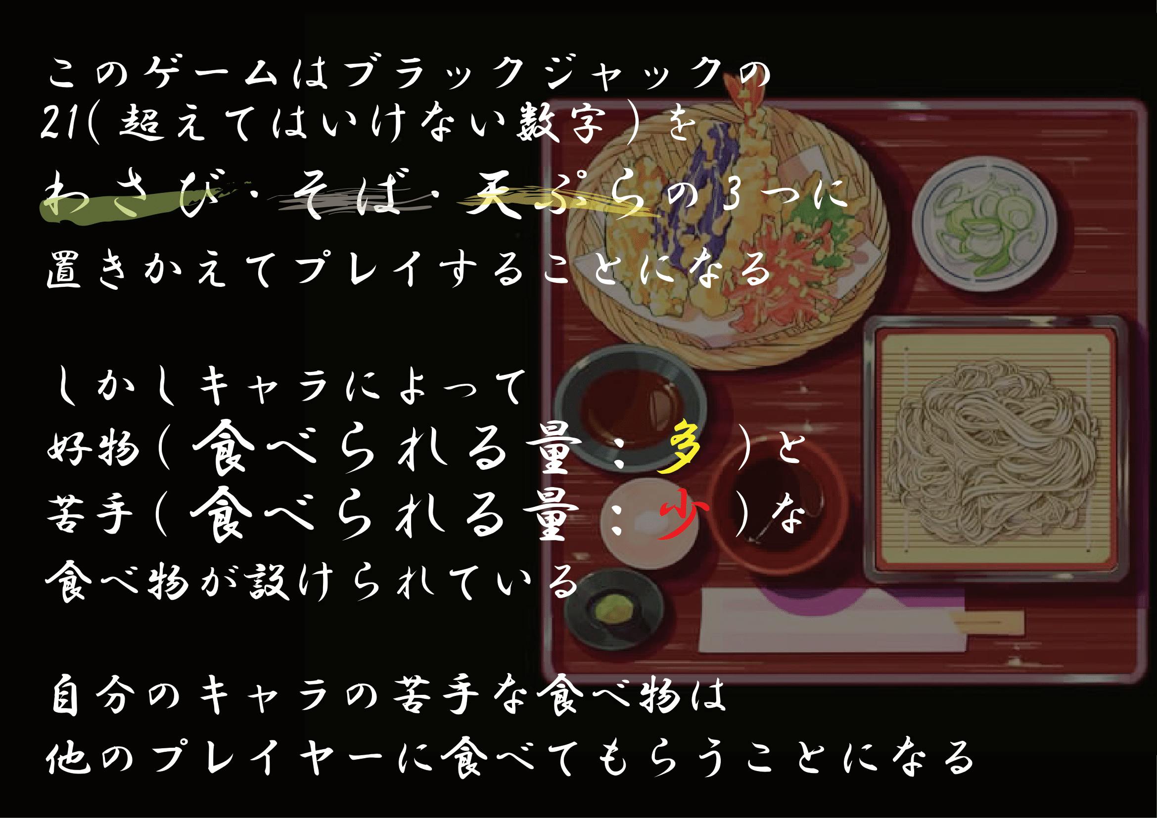 基本的には 天ぷらが苦手、そばが苦手(小食)、わさびが苦手