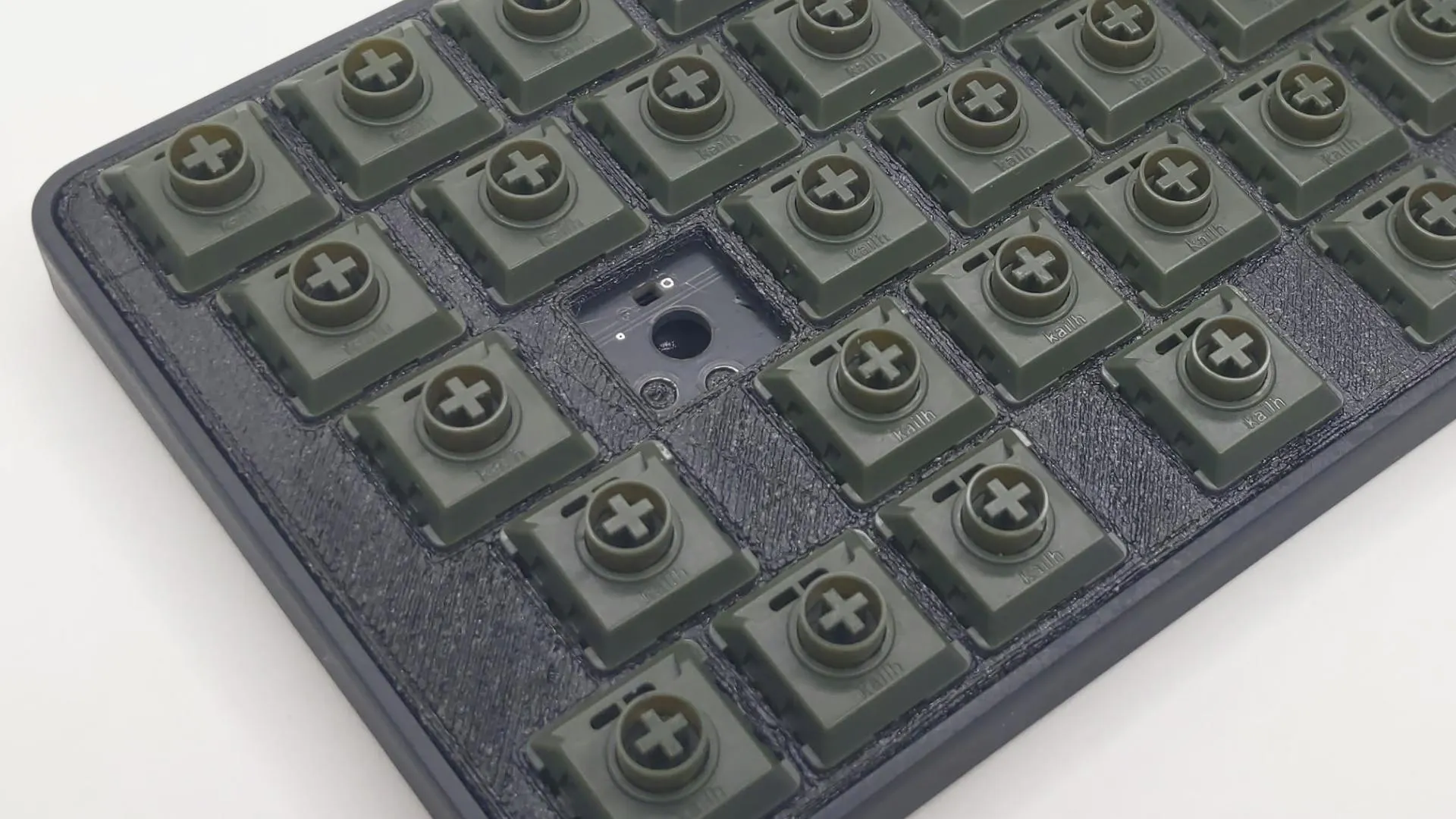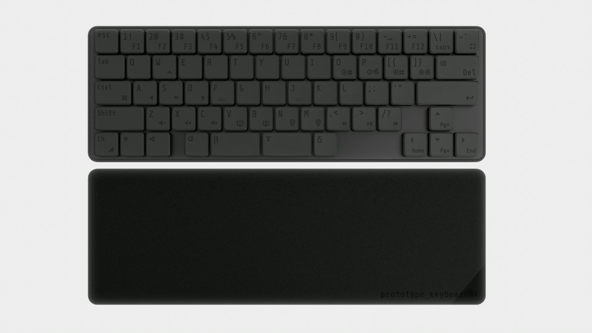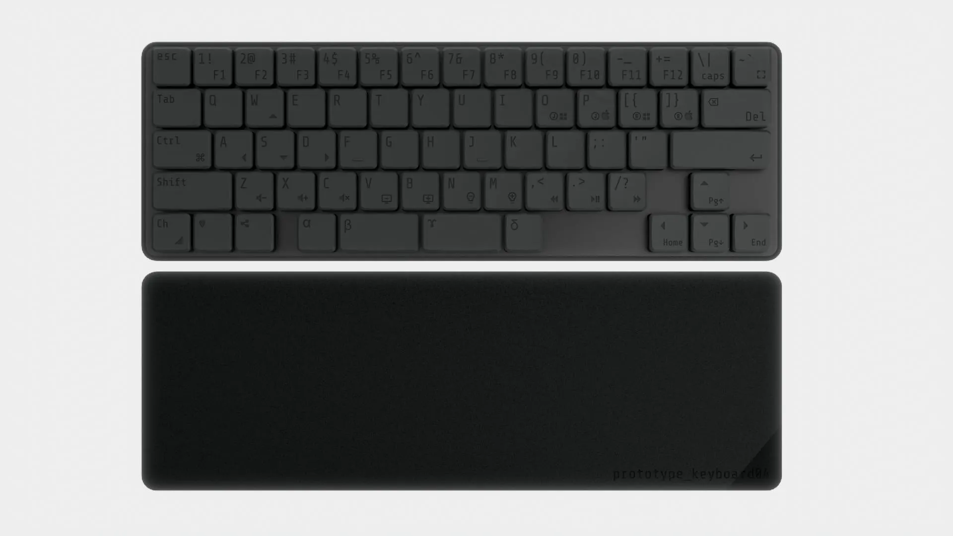 主に親指で操作する α、β、γ、δの4キーのキーキャップにはスロープをつけることで親指が引っかからないようにデザインしました。