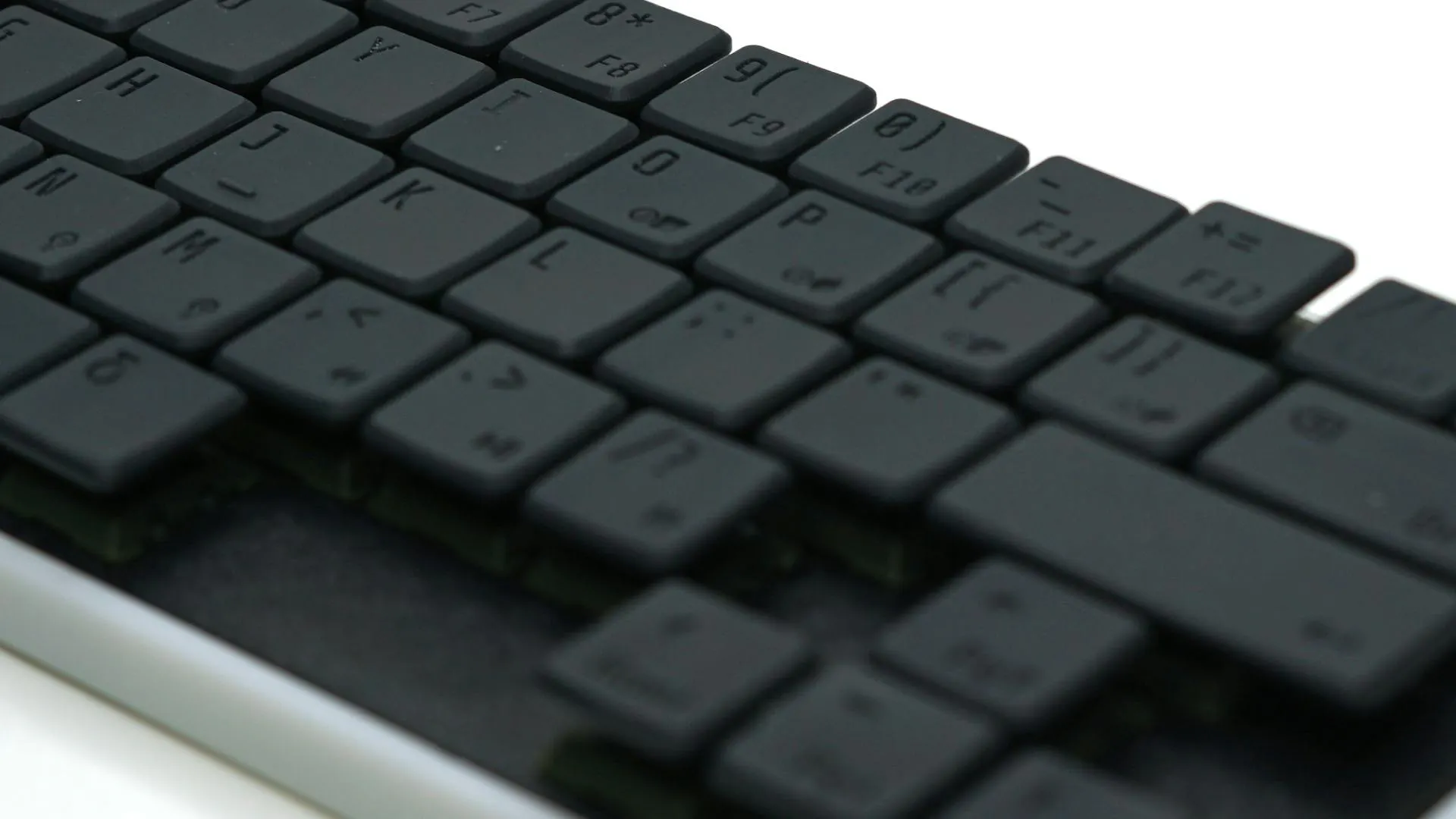 キーキャップをレジンを使って作れるという利点を使い、キーボードの刻印を削り出しのような方式で刻印しました。これにより、長時間使用しても刻印が消えることはありませんし、刻印も目立たないので、無刻印のようなデザインだが刻印はあるという、無刻印と刻印のいいとこどりのキーキャップに仕上がりました。