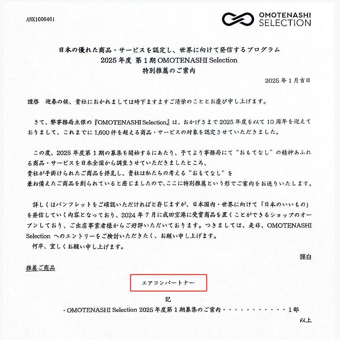 皆様、お世話になっております。このたび、弊社の製品「エアコンパートナー」が OMOTENASHI Selection 金賞 を受賞いたしました!日頃よりご支援いただいている皆様のおかげと、心より感謝申し上げます。今後とも「エアコンパートナー」をどうぞよろしくお願いいたします!