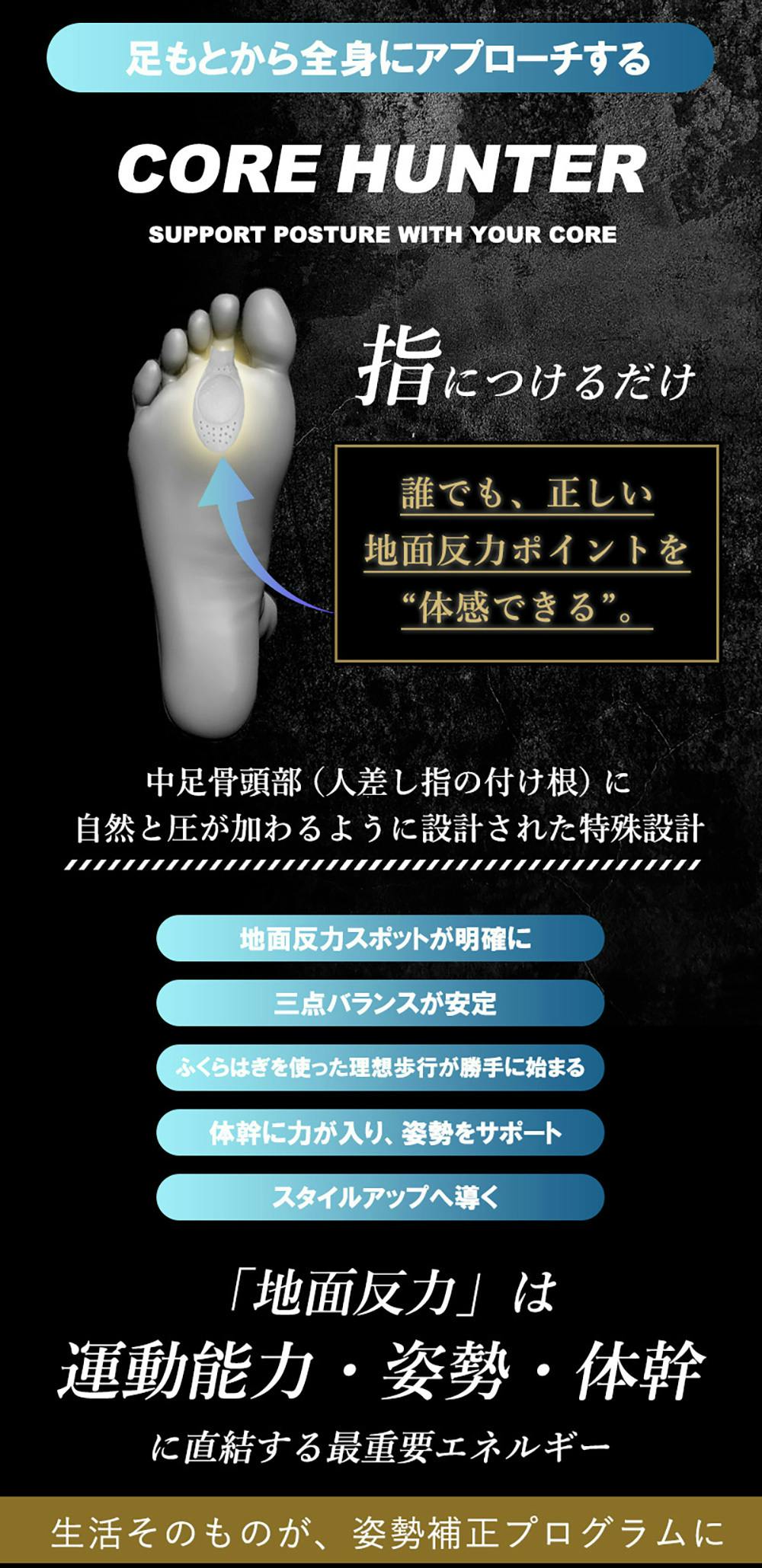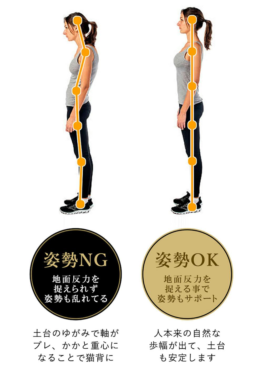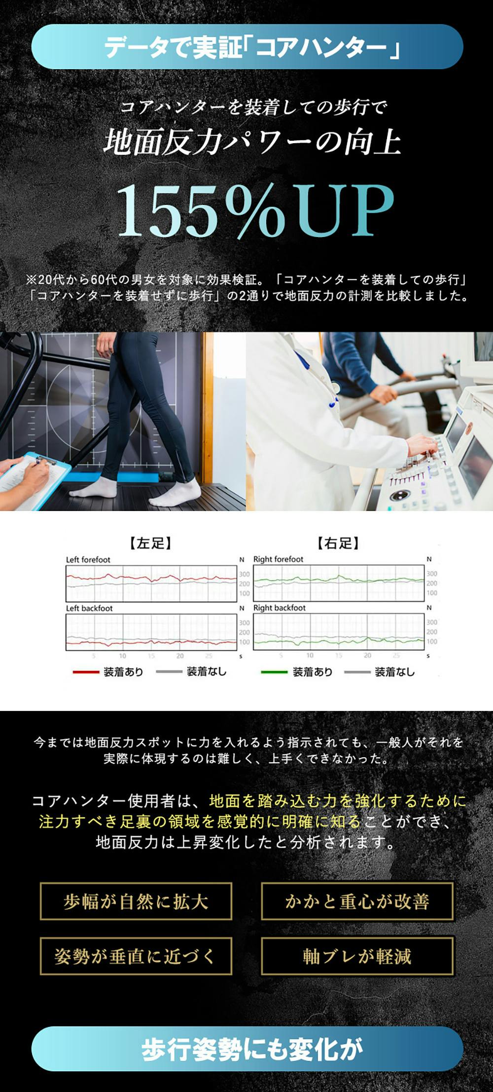②足裏のアーチをサポート、地面反力を155%アップして歩行をサポート