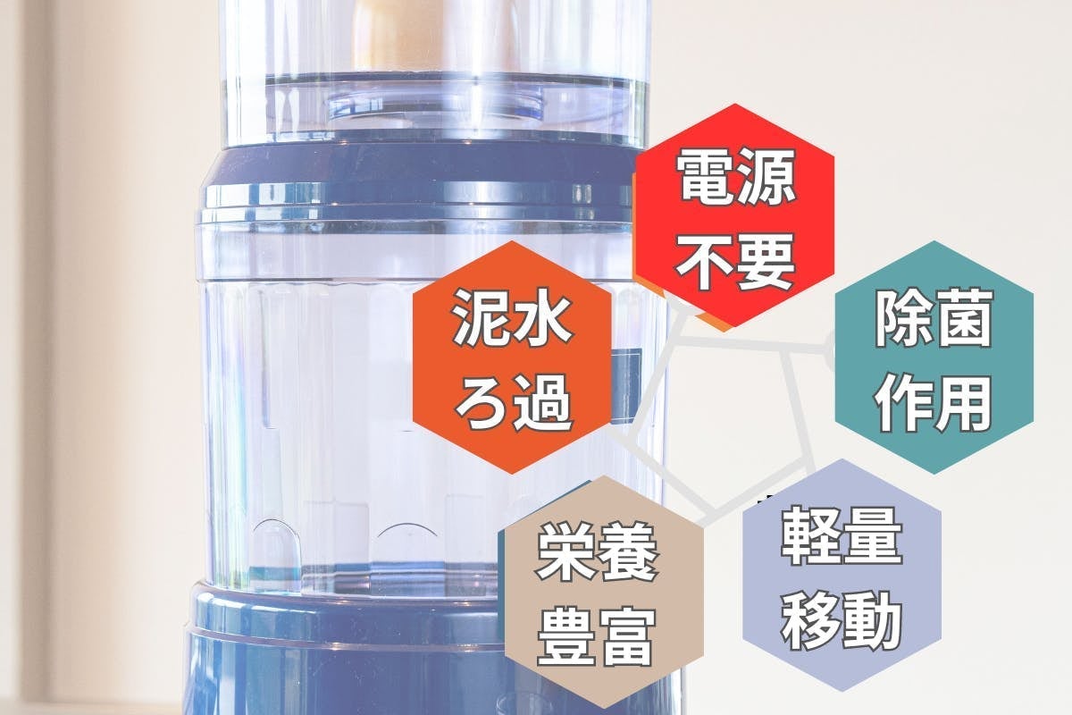 - ■停電・断水になっても、自然水から飲み水を造ることができる