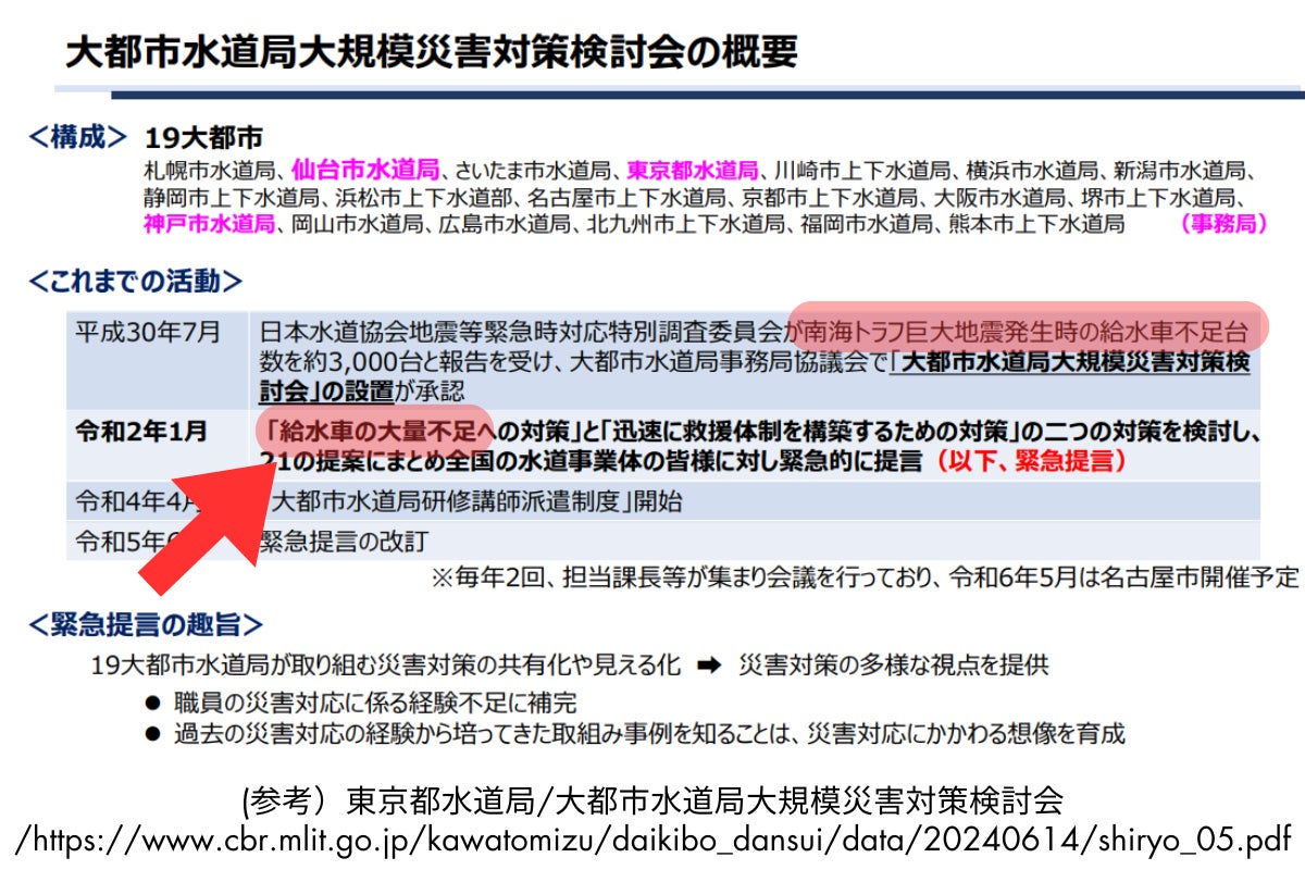 - ■大災害となれば、稼働できる給水車が大量に不足することが分かっています!給水車の支援がなくても、最低限の必要な飲み水は地域ごとに造水して確保していくことができます