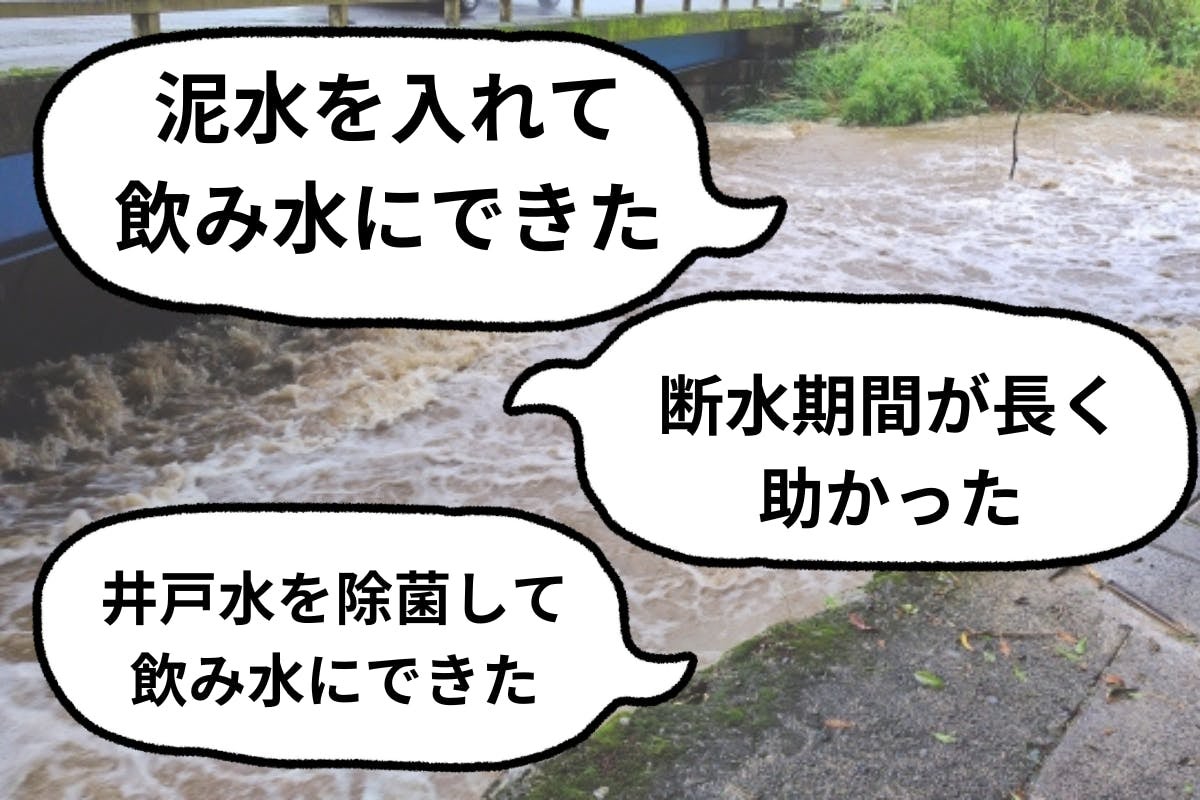 - ■地震により水質が変化している可能性があり井戸水湧き水が使用できなくなるリスクがあり、井戸水を浄化できる体制があれば、安心して飲用できます。