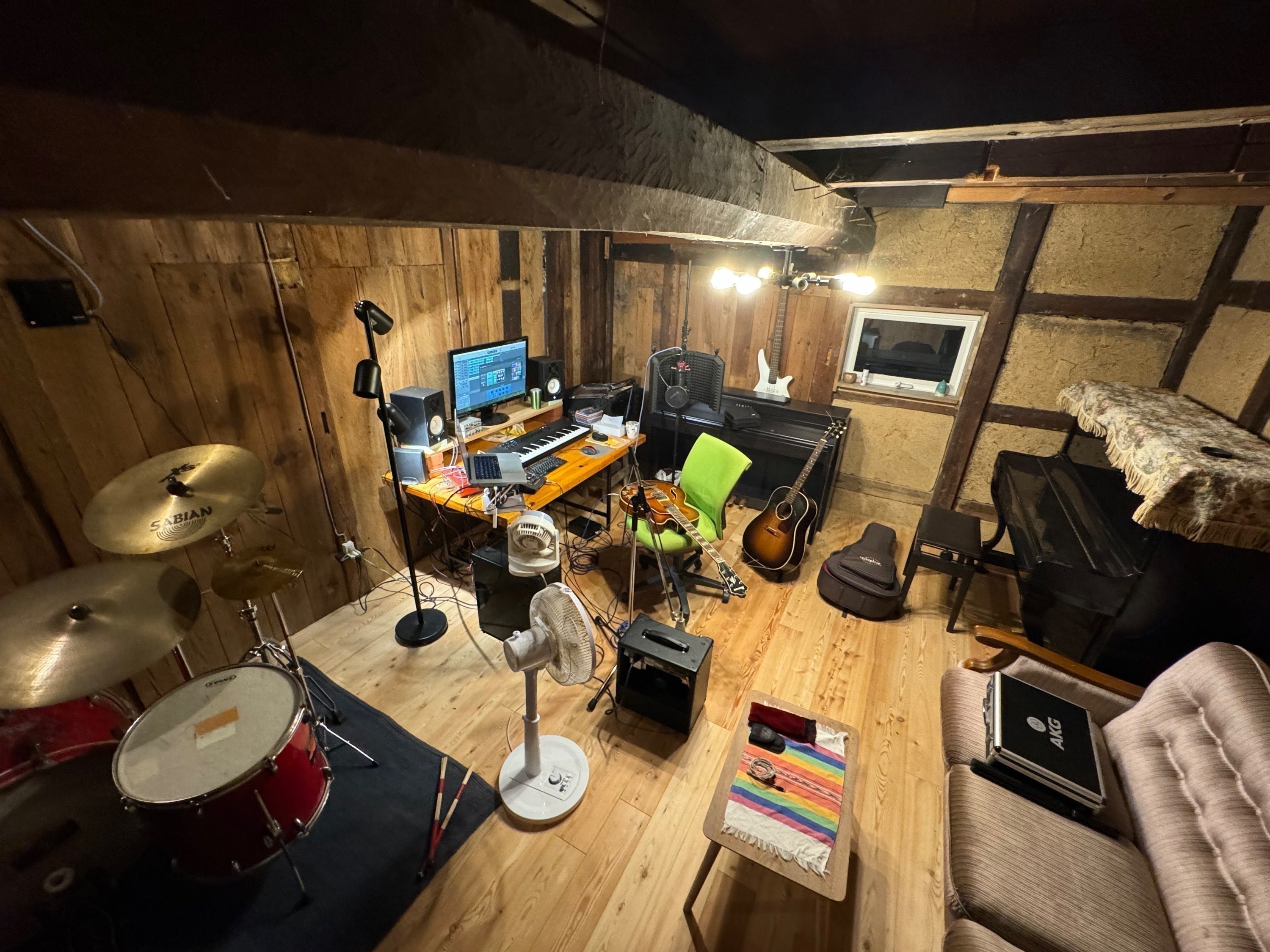 今回が人生3度目の正直。県北の三次市に移住し周りは田んぼ、畑、山に囲まれた里山。築100年になる土蔵を今すでにスタジオにしている。部屋は12畳。壁も厚さ約40センチとかなりスタジオにも適した環境がすでにそろっている。