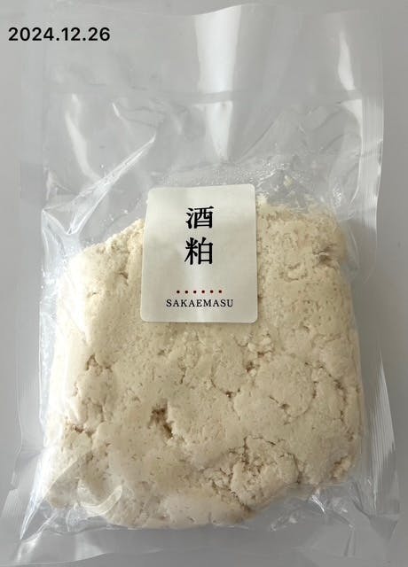 「SAKAEMASU 55_2024 群馬県邑楽郡板倉町産」の酒粕を一つひとつ袋詰めいたしました。板粕と違い搾り切らないため、日本酒がたっぷり含んだ、風味高く柔らかい練り粕に仕上がりました。