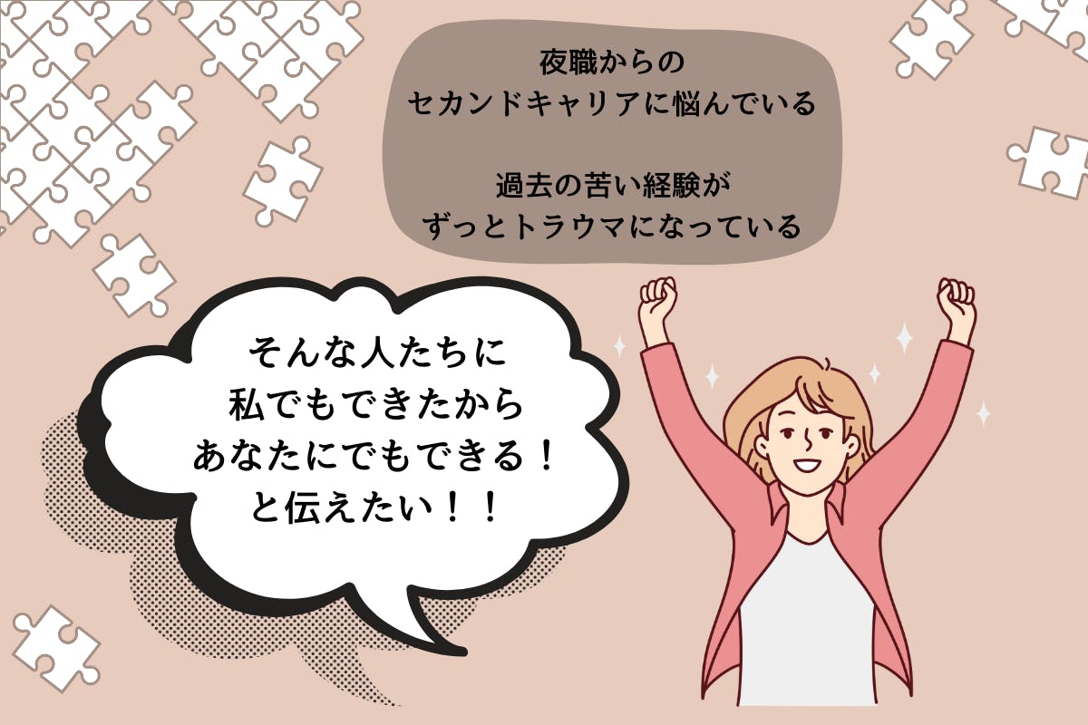 同じように夜職で働いている方々や、30歳を過ぎて新しいことに挑戦しようとしている全ての方々に、私の経験が少しでも勇気を与えられたらと思っています。