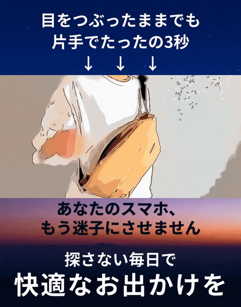 頻繁に使うものだから、ストレスなく、"最短最速"で出し入れができるようにしたスマホ専用のポケット「スマポ」。