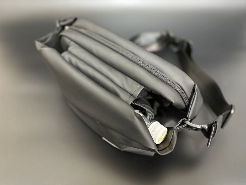 メインポケットの容量は3.1リットルで、500mlのペットボトル3本が入る幅と奥行があります。