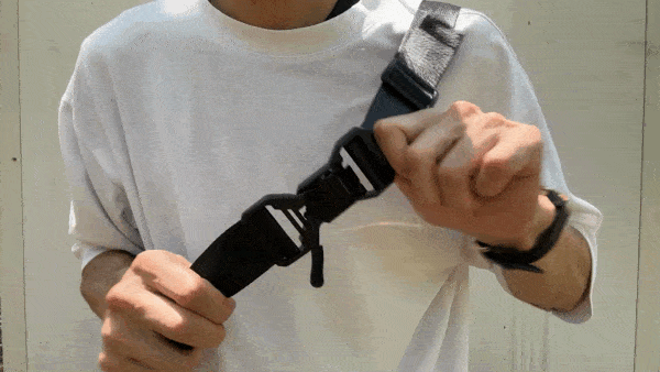 ショルダーバッグにはないフィット感で自由に動き回れるように、ダブルストラップバンドを採用しました。
