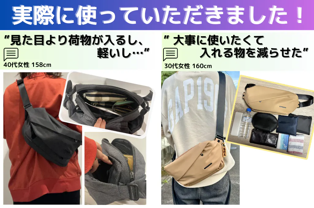 スマホや財布ハンカチをすぐ取り出せるのでストレスが減った!