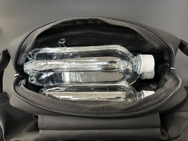 メインポケットの容量は3.1リットルで、500mlのペットボトル3本が入る幅と奥行があります。