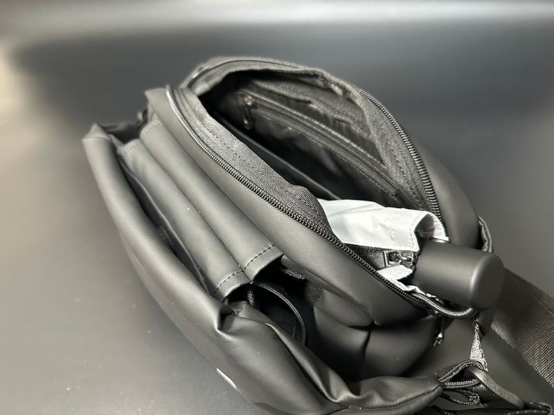 長さが26cm以内のコンパクトな傘ですと、メインポケットもしくはドリンクポケットに入れて持ち歩くことができます。