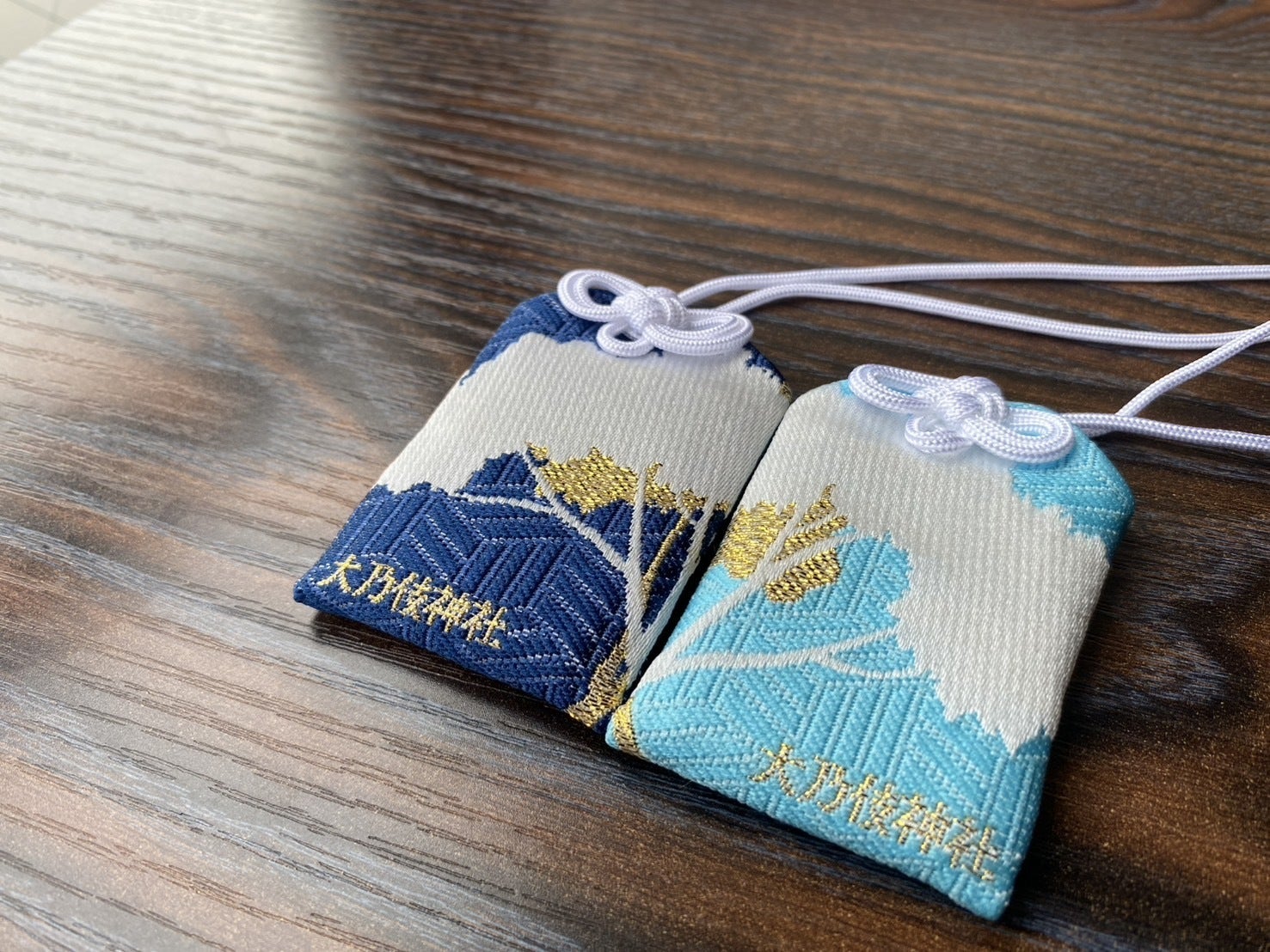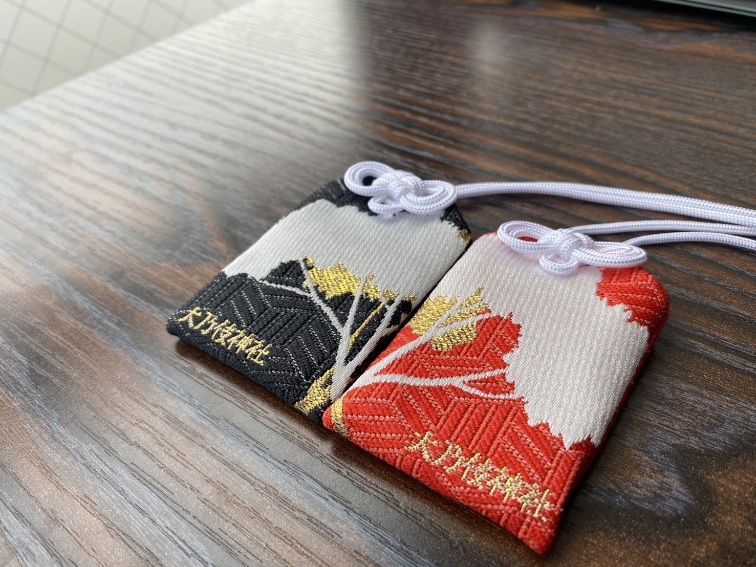 夫婦やカップルの絆を象徴するペアお守りです。落ち着いた色味のセットです。