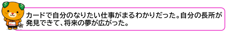 そうした中で、もっと早い時期に自分の強みを客観的に知る機会を持ってほしいと願うようになり、試行錯誤の末に「シゴト☆ジブン発見カード」の完成に至りました。