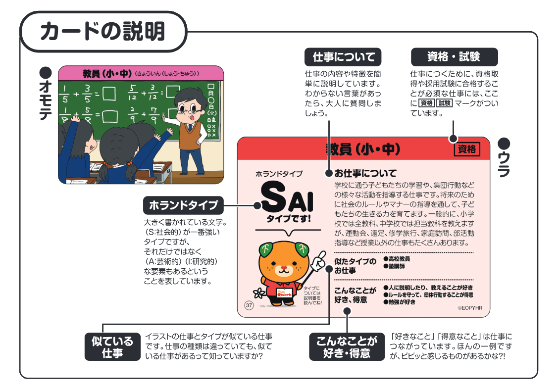 そのため、学校におけるキャリア教育教材として、ご家庭でのコミュニケーションツールとして、幅広く利用できます。