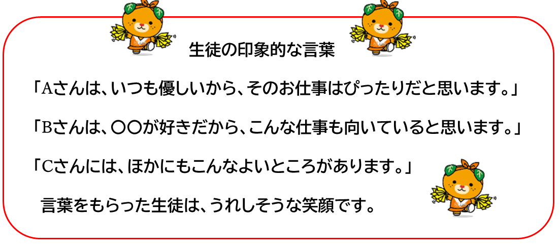 私たち大人も、自分では気づかない自分の強みや長所を他者から伝えられたとき、うれしい気持ちになりますよね!