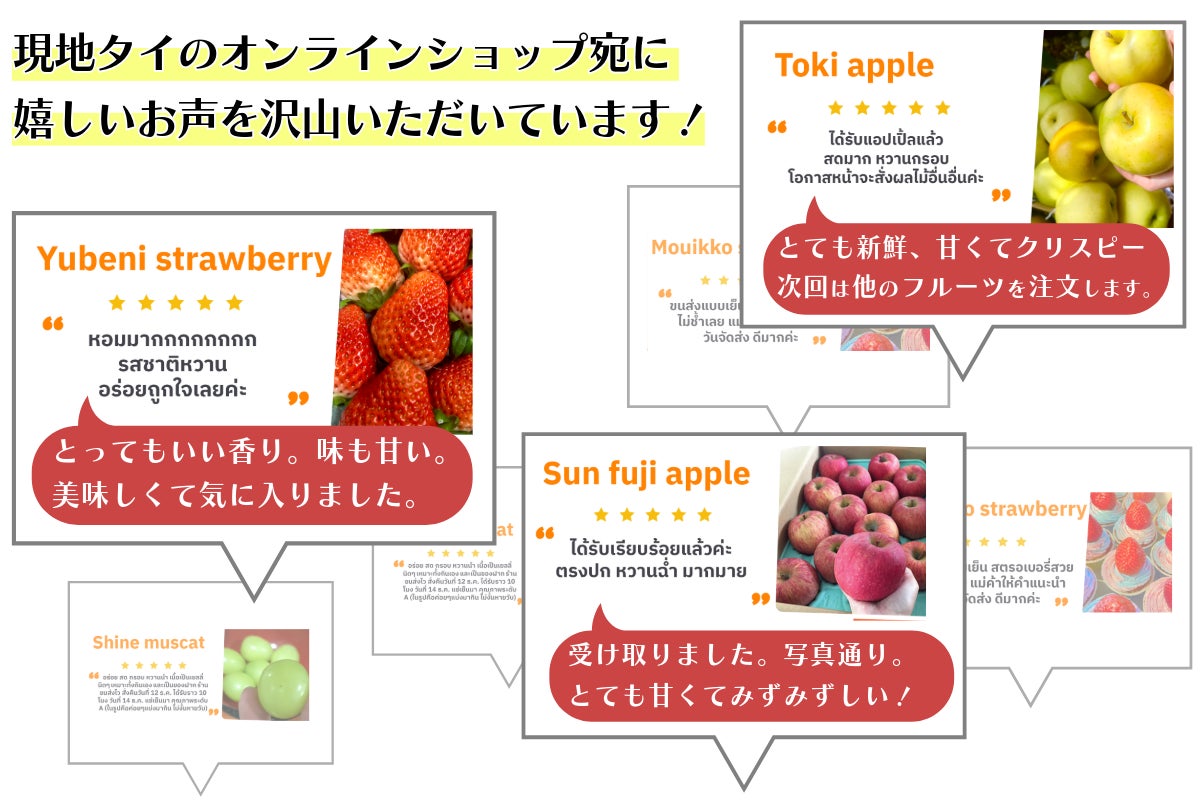 バンコクの支社が運営するオンラインショップにいただきました、タイのユーザーからの嬉しいお声の一部をご紹介いたします。
