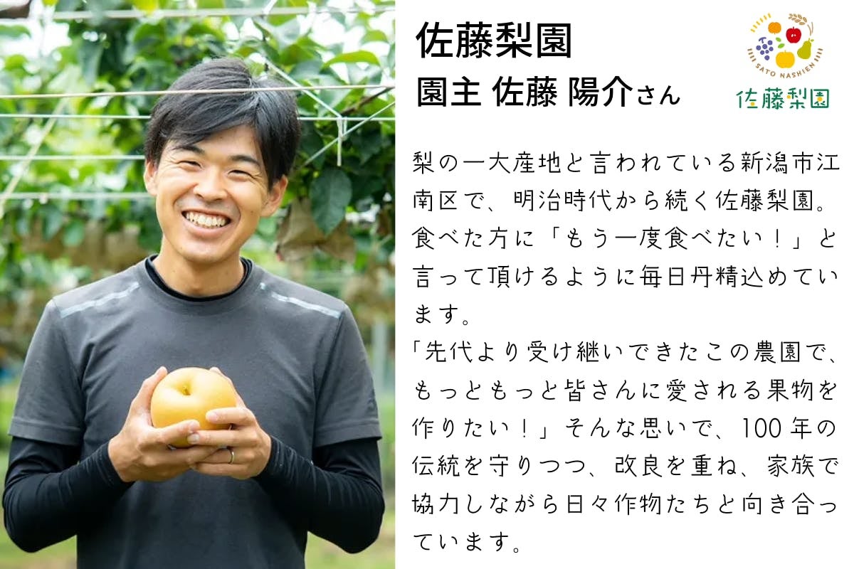 今回はシーズン真っ盛りの新潟の梨「新高」または「秋月」をお届けいたします。