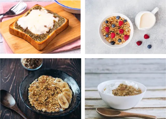 バナナやキウイなどのフルーツと合わせたり、牛乳や豆乳またはヨーグルトとも相性抜群です。