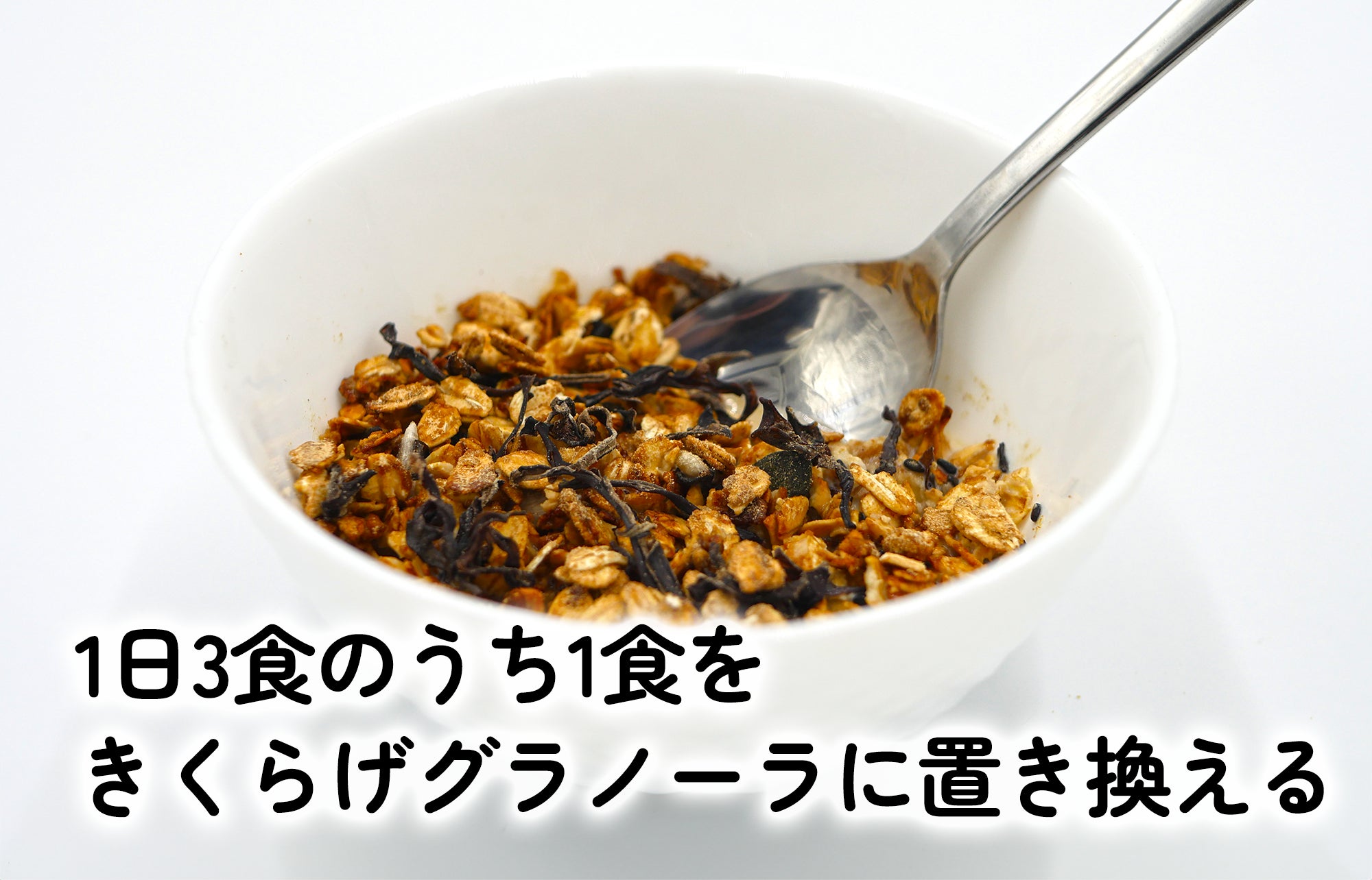 1日1食「きくらげグラノーラ」を取り入れてみることを是非オススメします。特に慌ただしい朝食を手軽な「きくらげグラノーラ」に変えてみてはいかがでしょうか。