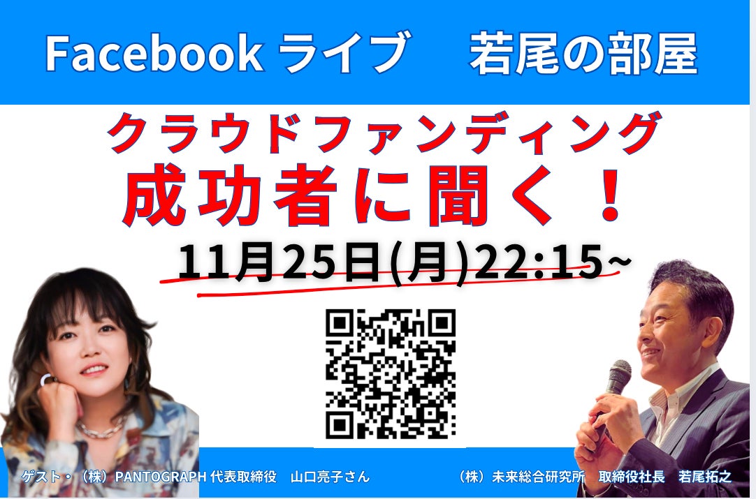 ◇◆本日11月25日(月)22時15分~若尾の部屋【クラウドファンディング成功者に聞く】◆◇