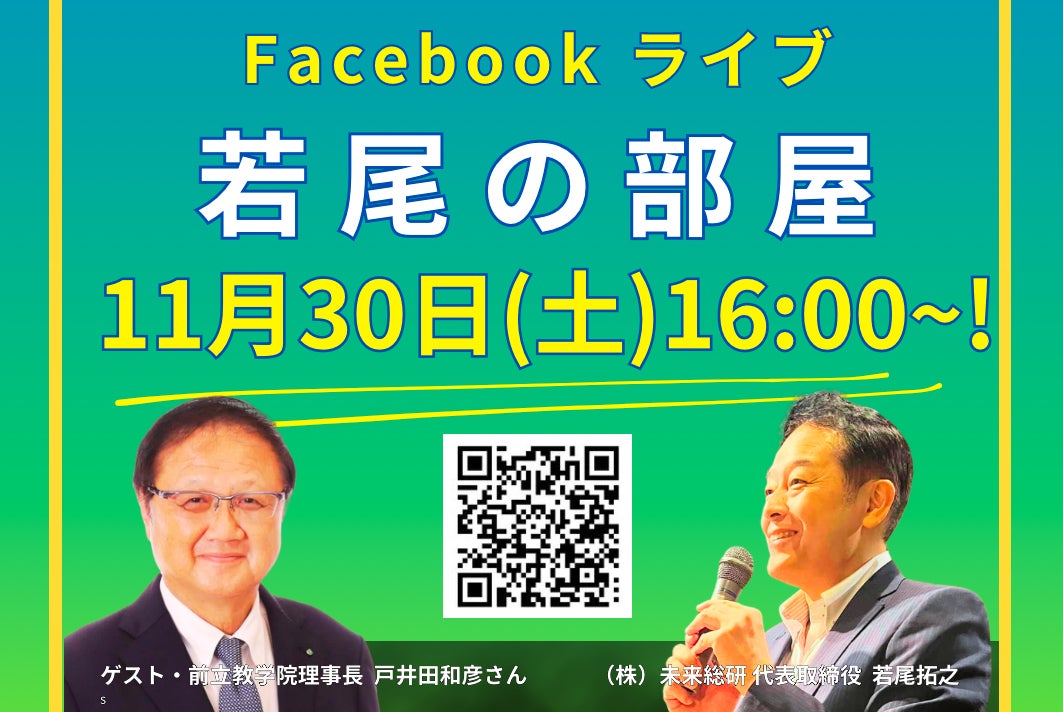 11月23日(土)15時~、11月30日(土)16時~立教学院前理事長の戸井田和彦さんとのFacebookライブ開催!◆◇