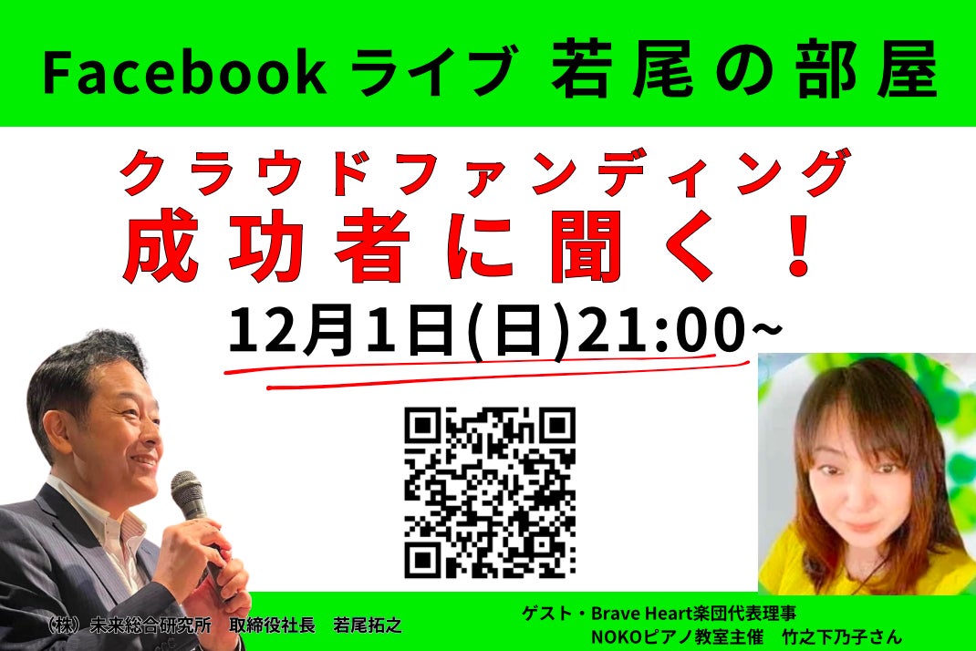 ◇◆12月1日(日)21時~若尾の部屋【クラウドファンディング成功者に聞く】ゲストは、Brave Heart楽団代表理事