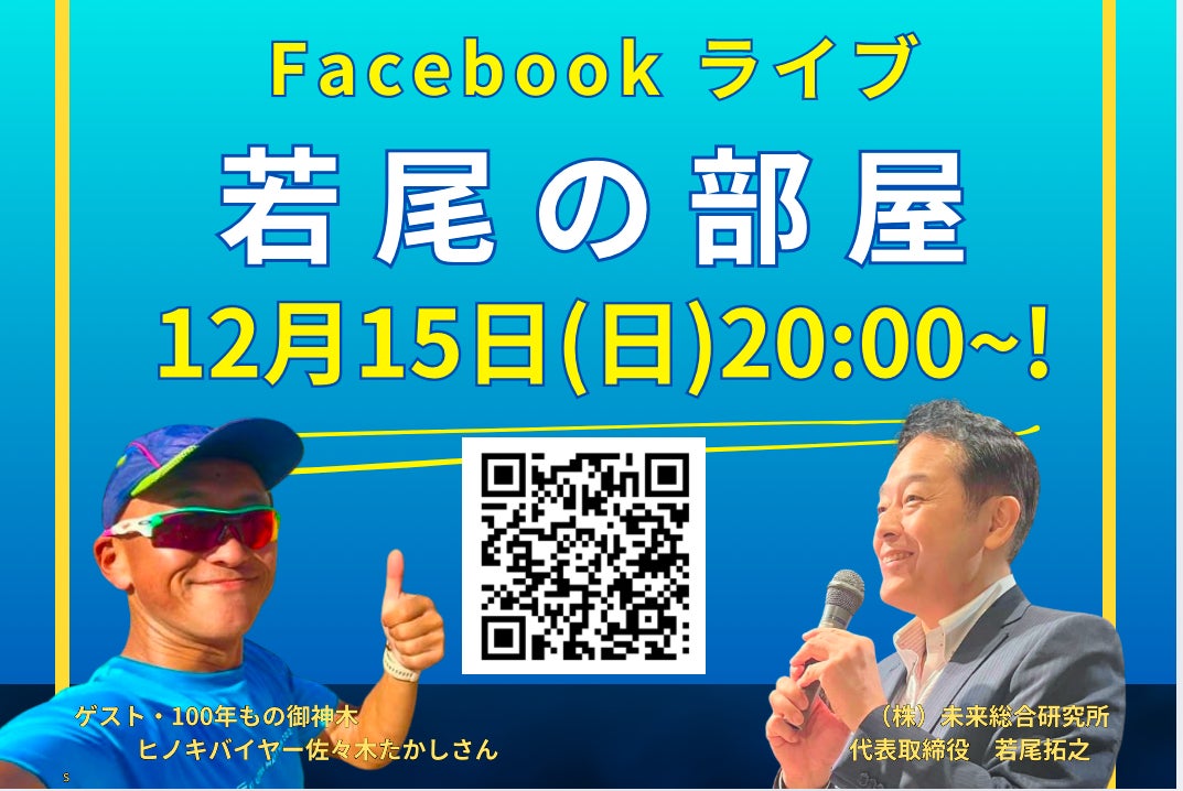 Facebookライブは、若尾拓之のFacebookアカウントでご視聴いただけます➟ https://www.facebook.com/wakao.hiroyuki.5