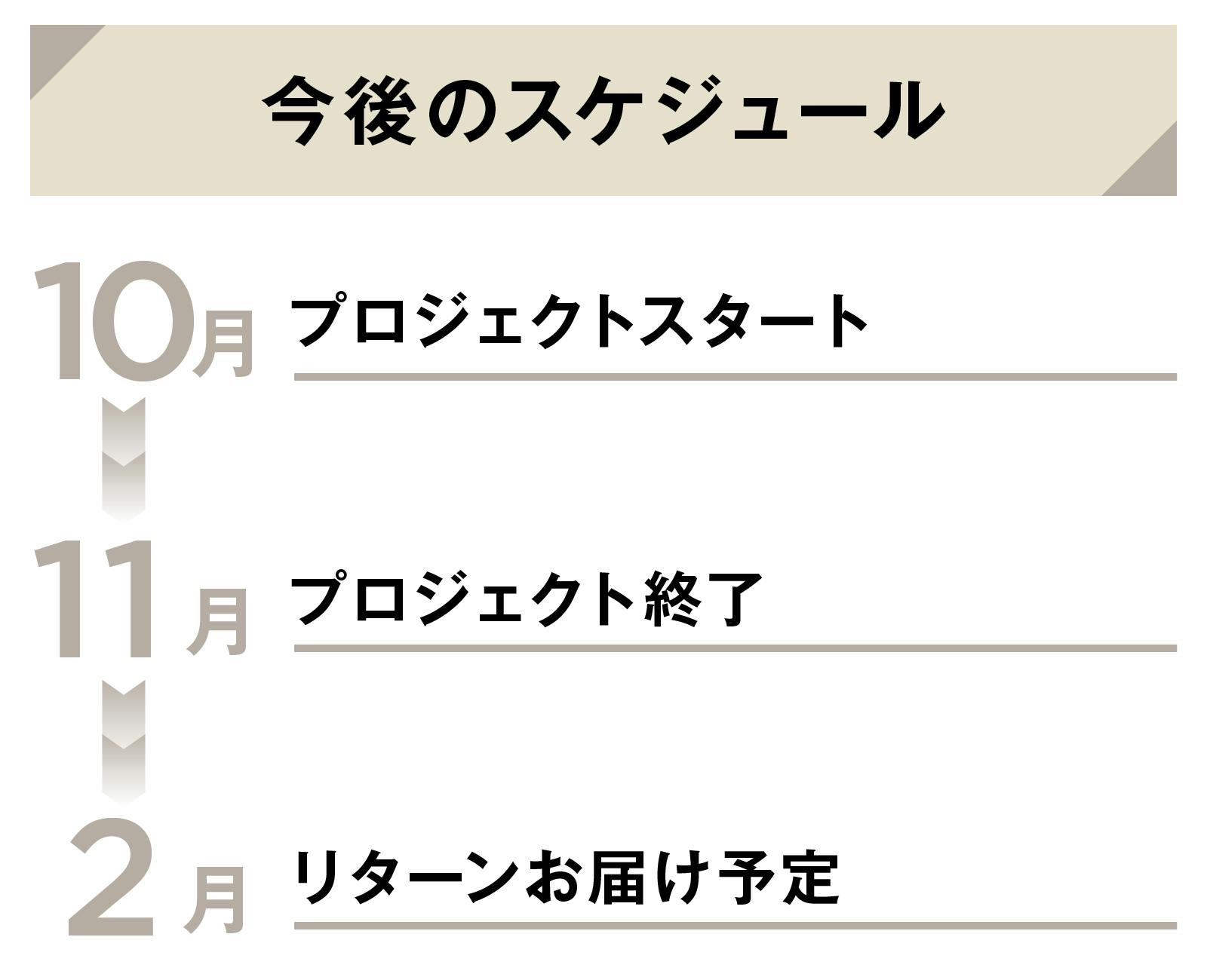 ※本文中に記載させていただいたスケジュールは、あくまでプロジェクト公開時点の予定です。ご支援の性質上、配送遅延のおそれがございます。