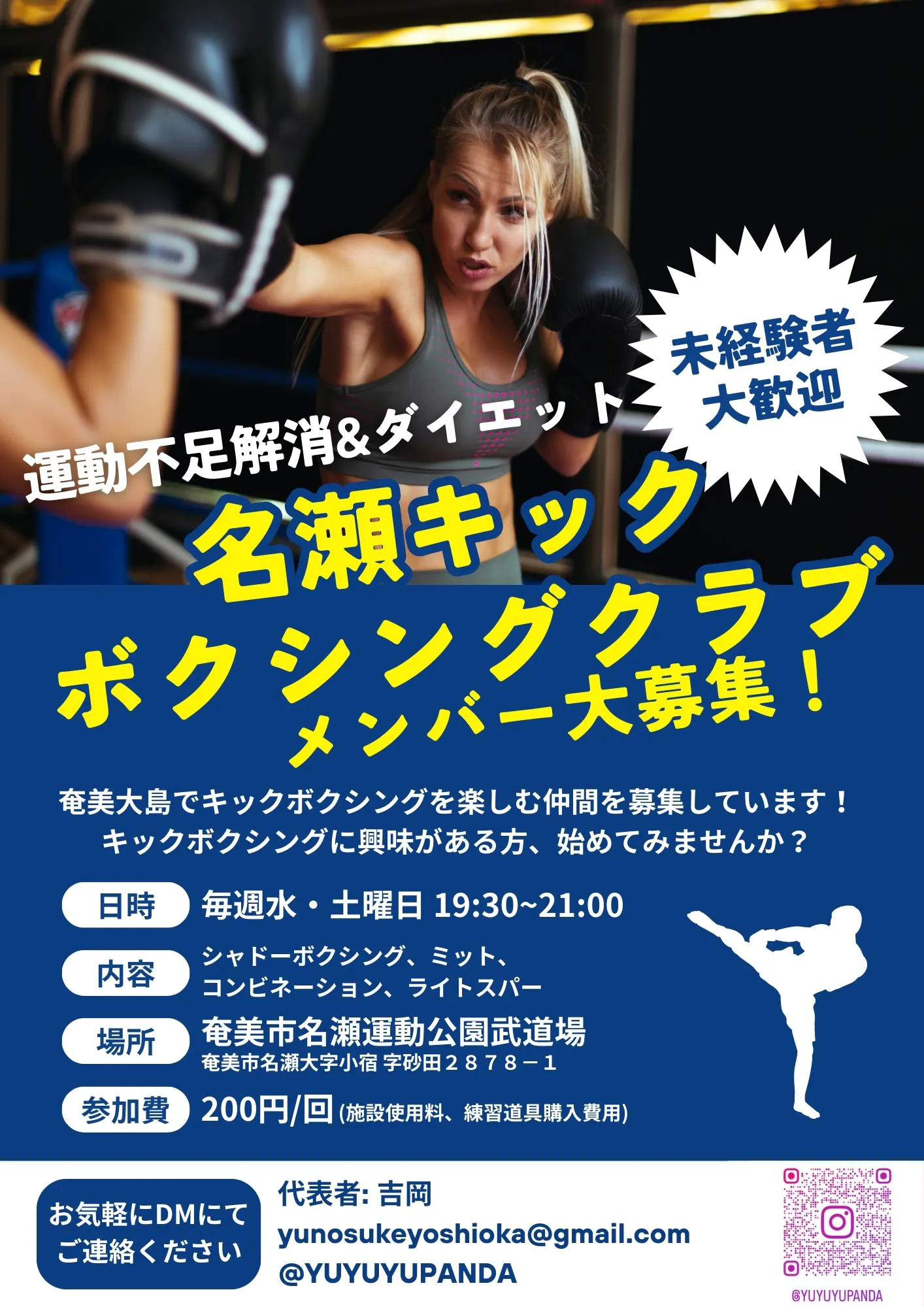 皆様の温かいご支援を心からお願い申し上げます。どうぞ、奄美名瀬キックボクシングクラブを応援してください。