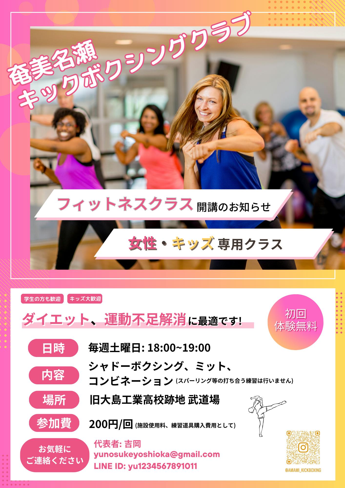 この度、女性・キッズ専用のフィットネスクラスを開講することになりました!ダイエットや運動不足解消に最適!初心者の方も大歓迎です。ぜひ気軽にご参加ください