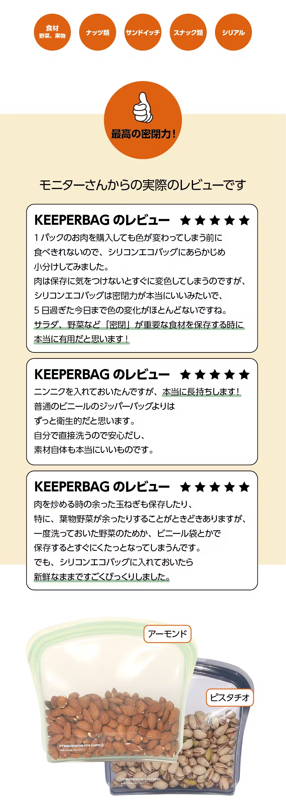 これからはKEEPERBAGに食材を長~~く新鮮なまま保存してください!
