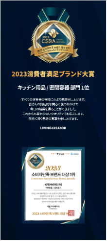 顧客から愛されることに努力をし、昨年は、キッチン用品、密閉部門1位、消費者満足ブランド大賞に選ばれました。