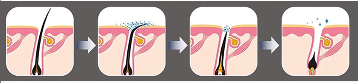 除毛マジックの技術で、従来の剃刀やワックス脱毛に伴う痛みや肌荒れを避けることができ、化学薬品も必要ありません。