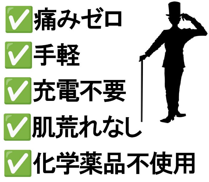 🎩痛みゼロ:カミソリやワックスのような痛み無し