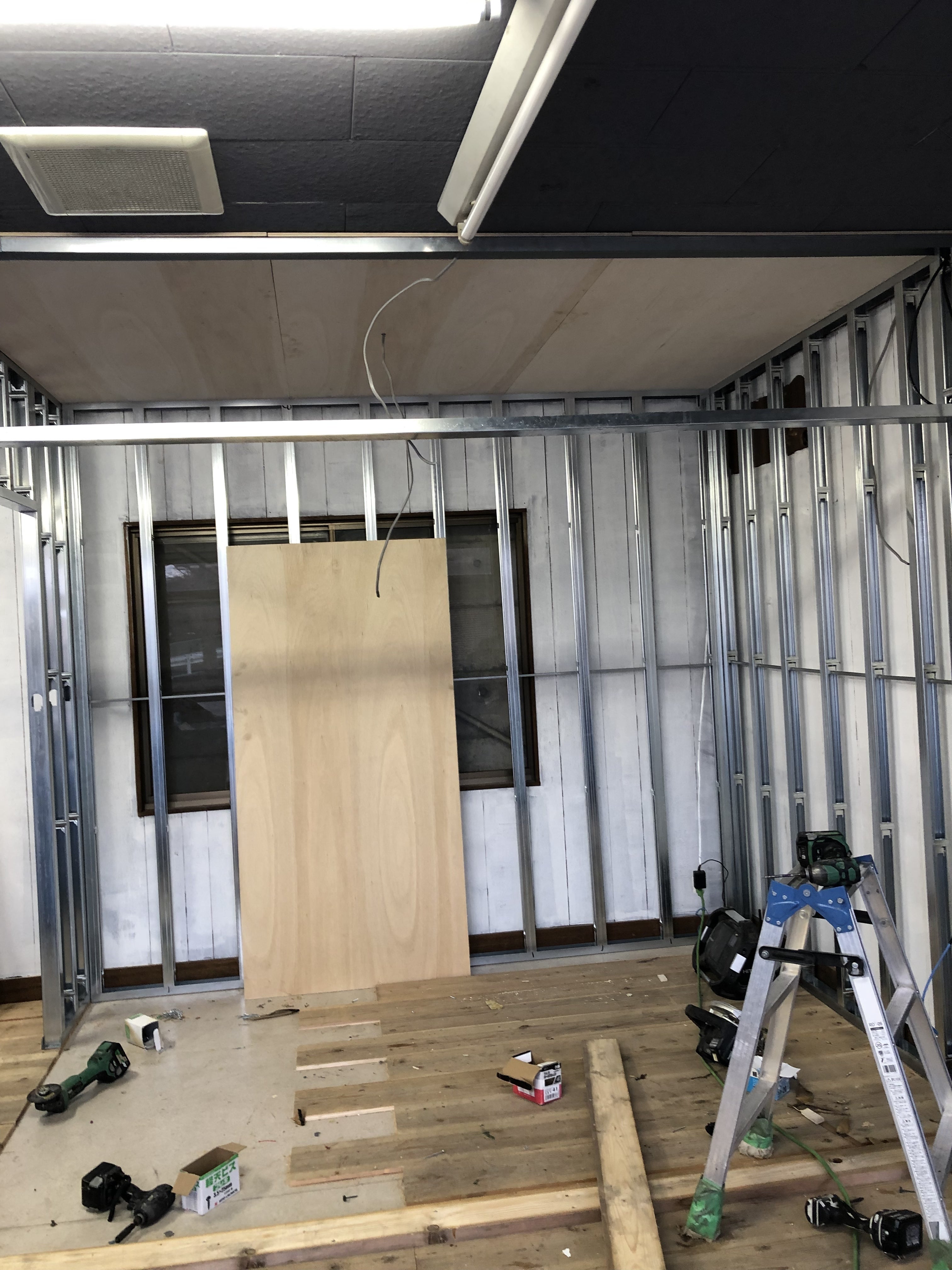 待ちに待っていたキッチンの工事が始まりました!!なぜこんなに時間がかかってしまっていたかと言いますと、クラファンが始まる前に工事をお願いしていた業者さん(見積もりなどもお願いして、当初は11月から工事に入ってもらう予定でした)が忙しくなってしまい12月から連絡が取れなくなってしまいました。1月に違う大工さんにお願いしましたが、他の工事が入っていて忙しくすぐに工事に入ってもらえなかったんです。4月にはイベントもあるので気持ちが焦っていたのですが、先週の木曜日(2019.2.28)に「来週から工事入ります」と連絡がありついに、ついに工事が始まりました!!2019年3月4日から工事に入ってもらい、初日にここまで進みました。軽天と呼ばれる軽量の鋼材でキッチンの区画を作ってくれています。また飲食店と同様の扱いとなるために、保健所や消防署にも出向き相談報告してきました。▲山梨県中北保健所▲3月7日には消防署の視察的なのも受けました。消防車で3人もきたのでびっくりΣ(・□・;)▲厨房機器もガスレンジ、2槽シンク、作業台、ガスレンジ、湯沸かし器を中古の厨房機器屋さんで揃えて出番を待っています!工事はどんどん進んでいますが、まだもう少しかかりそうです。また進展をお知らせします!!